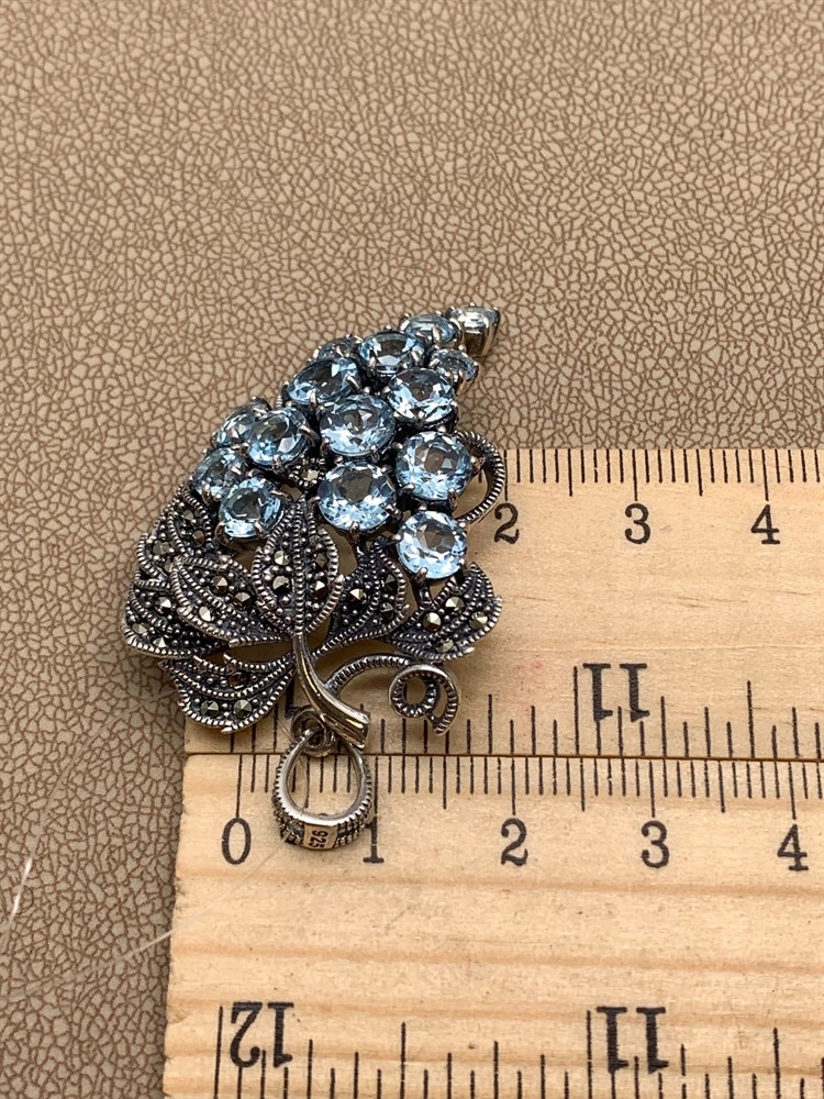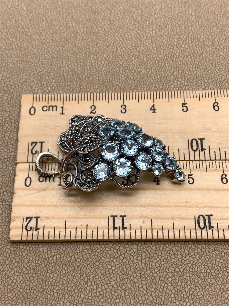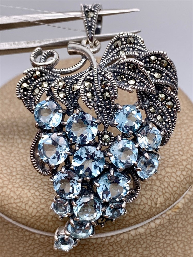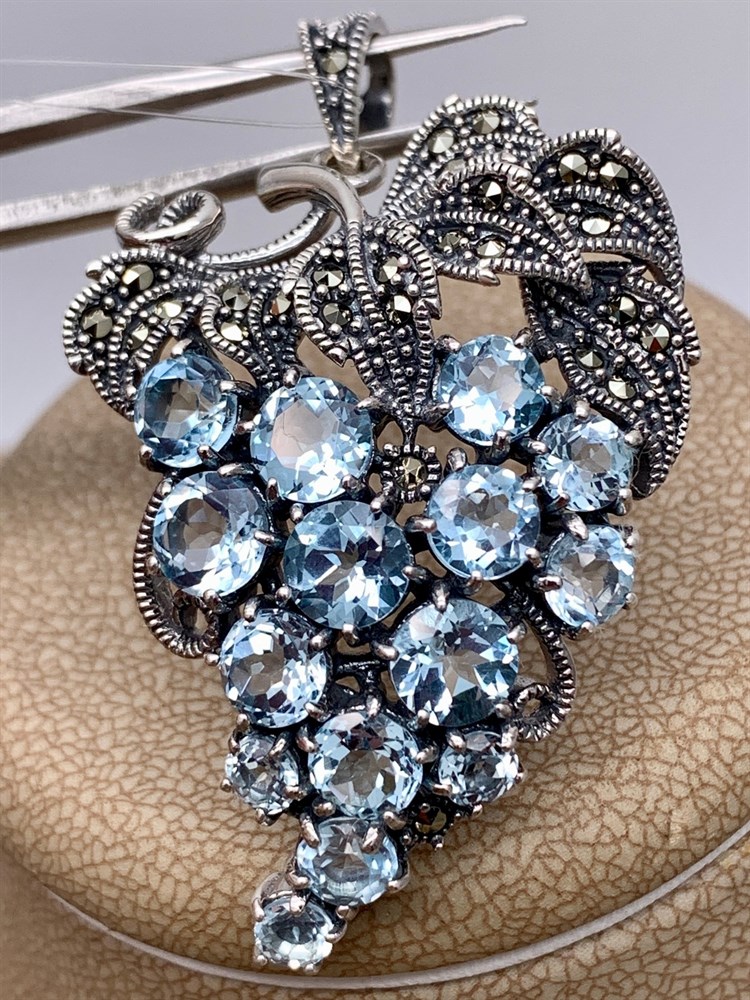 *Подвеска Виноградная Гроздь Марказит Голубой Топаз арт. HP616-Топаз-145 вес 11.73 г