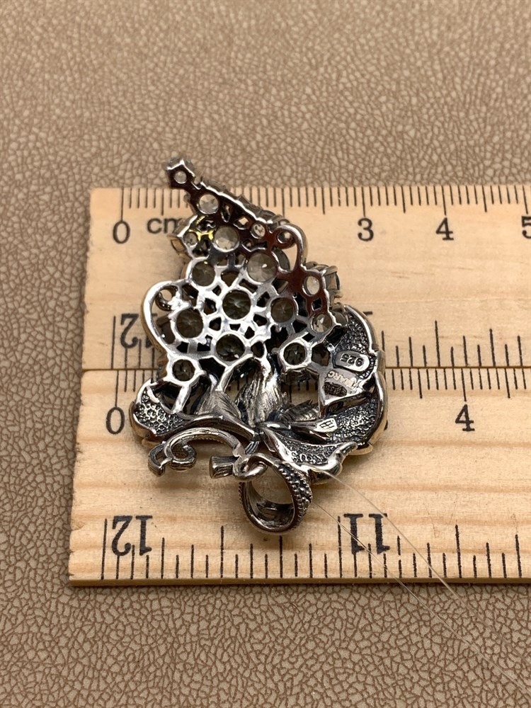 *Брошь Кулон Виноградная Гроздь Микс Марказит Голубой Топаз арт. HB482-019 вес 12,95 г
