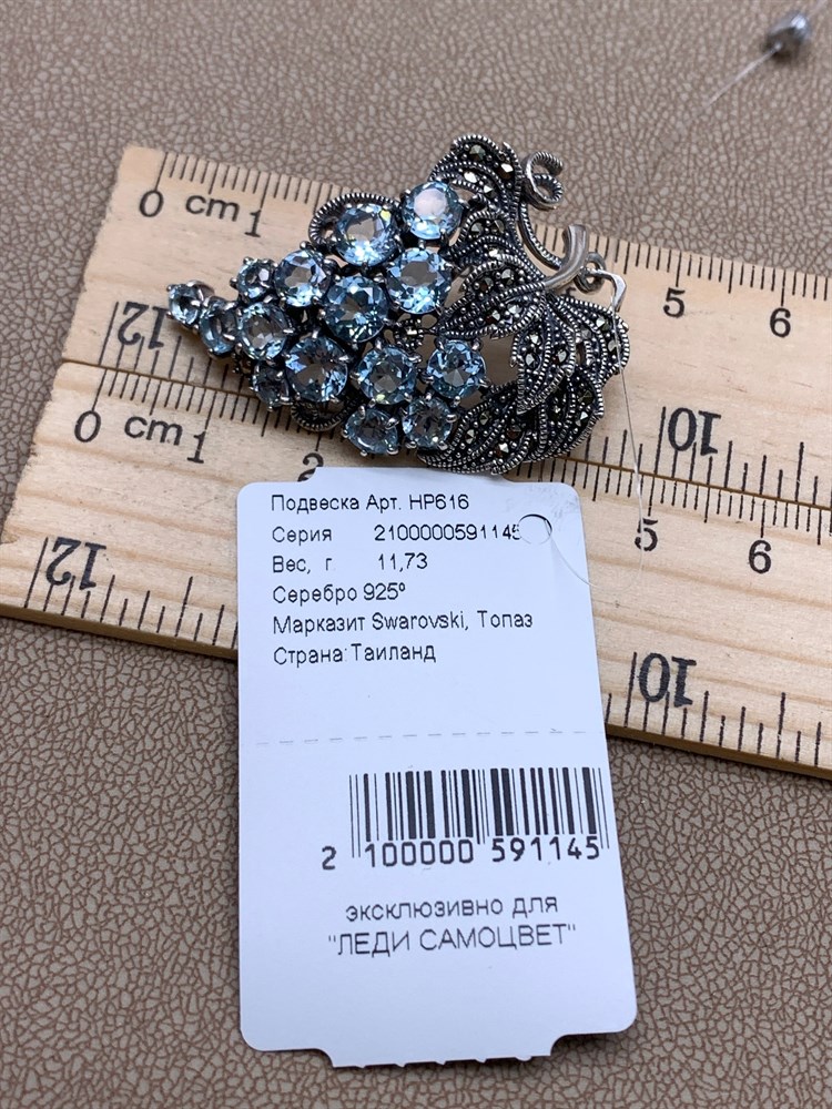 *Подвеска Микс Марказит Голубой Топаз арт. HP1107-Топаз-807 вес 24.09 г