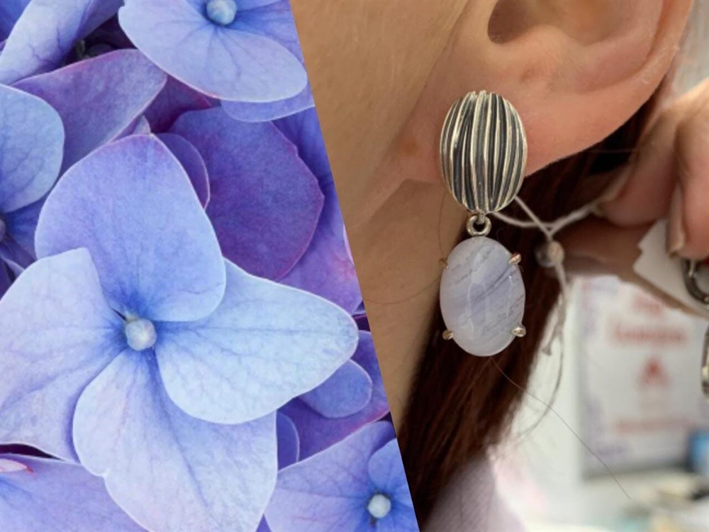 *Серьги Агат Сапфирин арт. 2310391373-84-252 Вес 8,61 г
