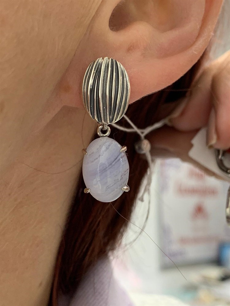 *Серьги Агат Сапфирин арт. 2340391173-84-979 Вес 6,64 г