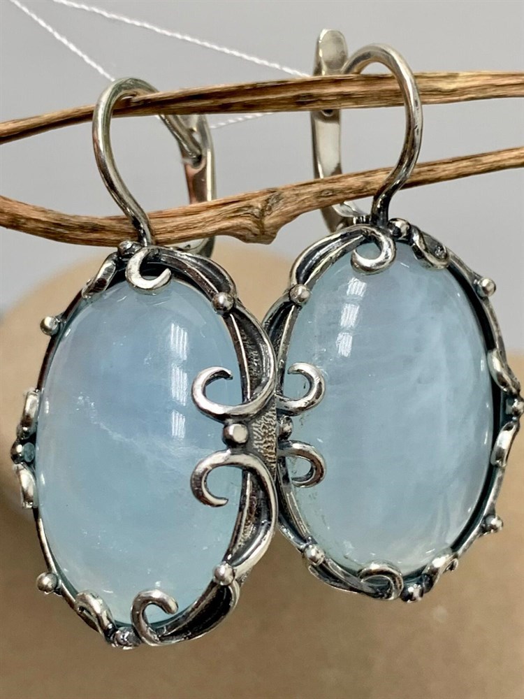 *Серьги Аквамарин Забайкалье Оксид АРТ 150-553 (ВЕС 18 Г)