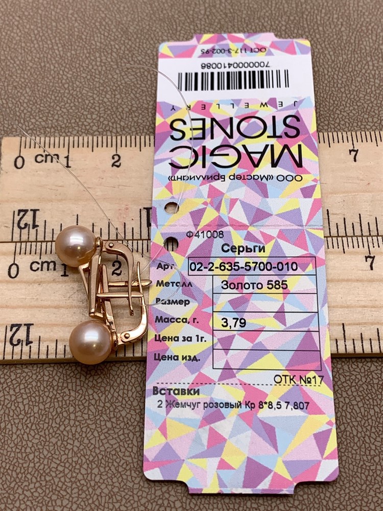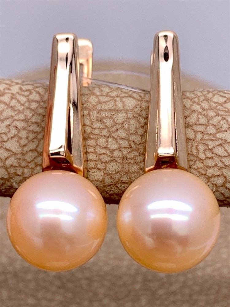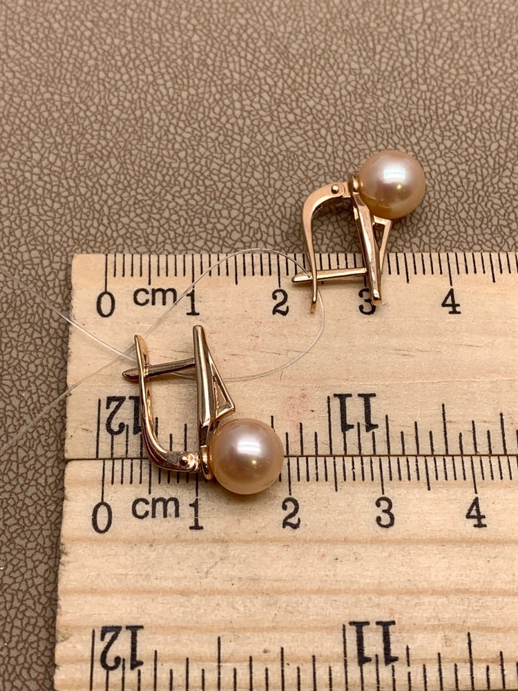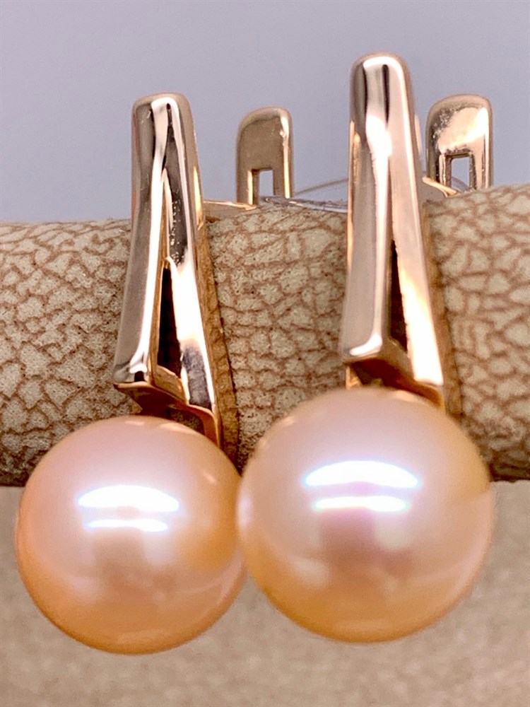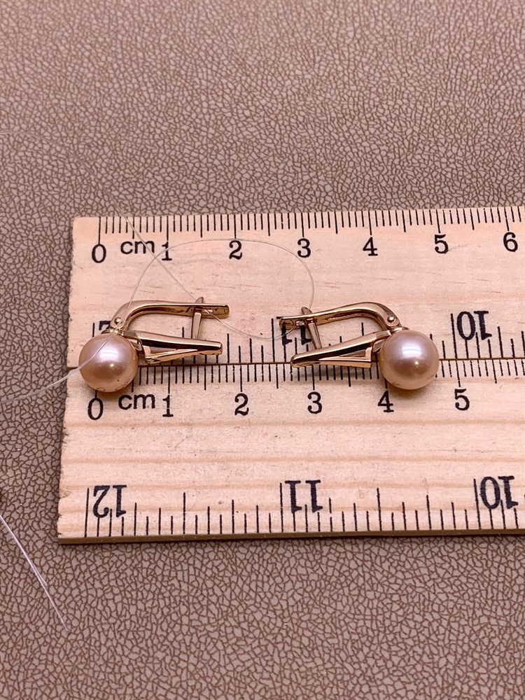 *Серьги Розовый Жемчуг д.8-8,5 цв Красное арт. 02-2-635-5700-010-086 Вес 3,79 г