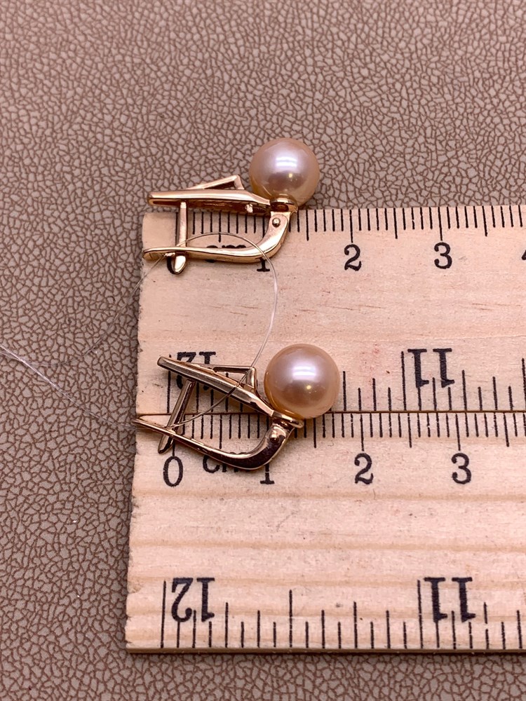 *Серьги Белый Жемчуг д.8-8,5 цв Лимонное арт. 02-2-113-0500-020-110 Вес 4,31 г