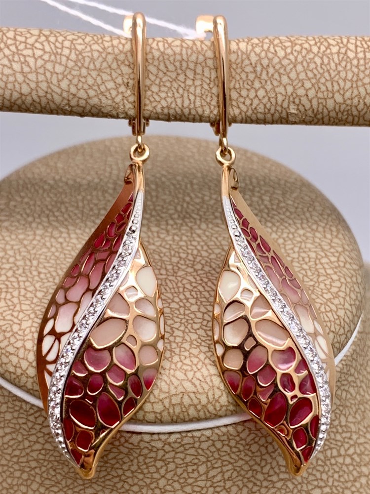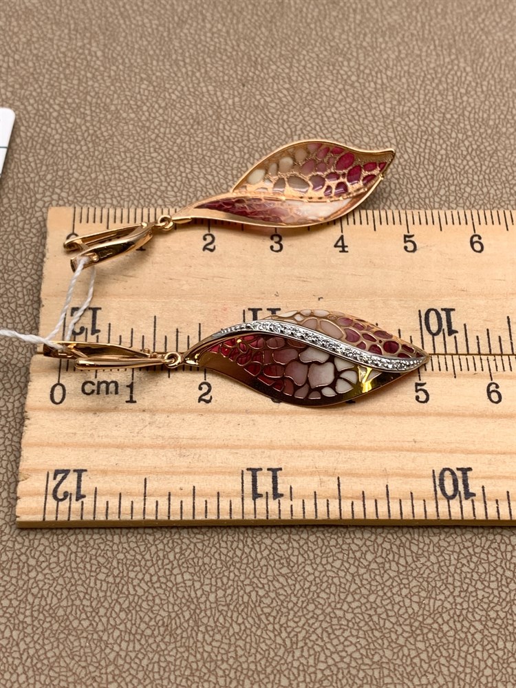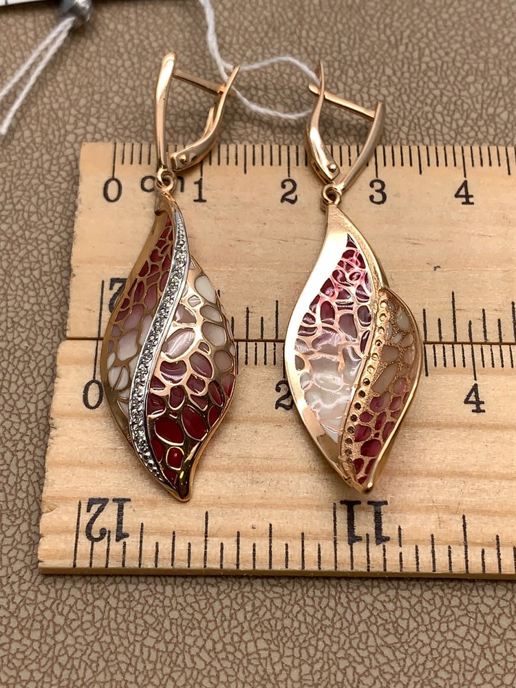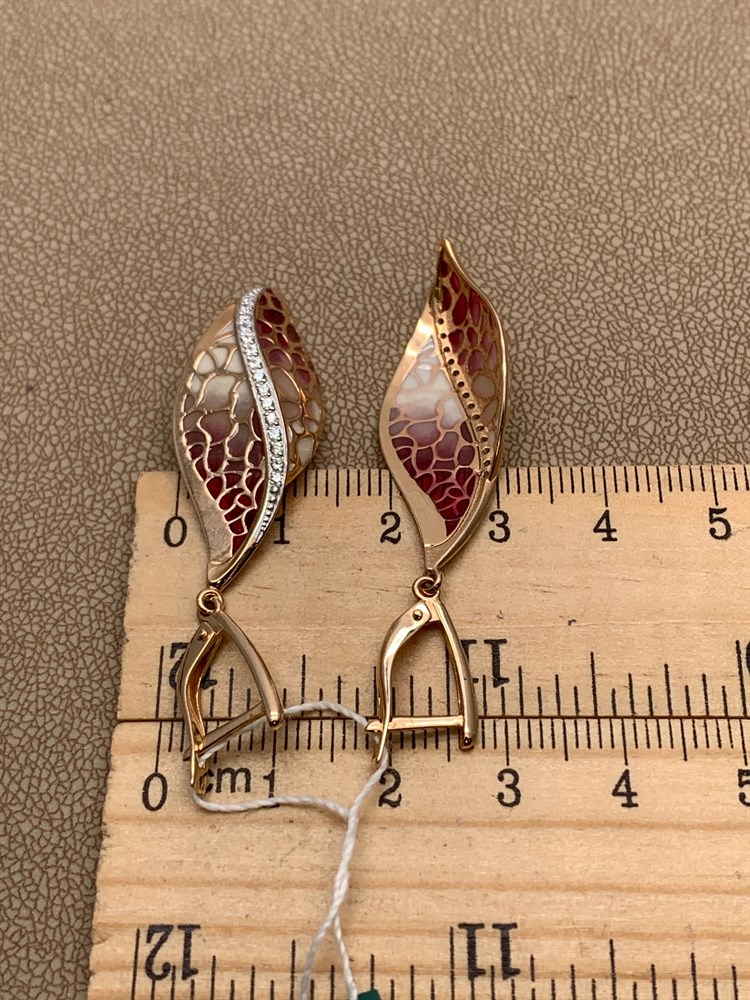 *Серьги Фианит, Эмаль цв Красное арт. 02-3842-00-401-1110-48-420 (вес 4,75 г)