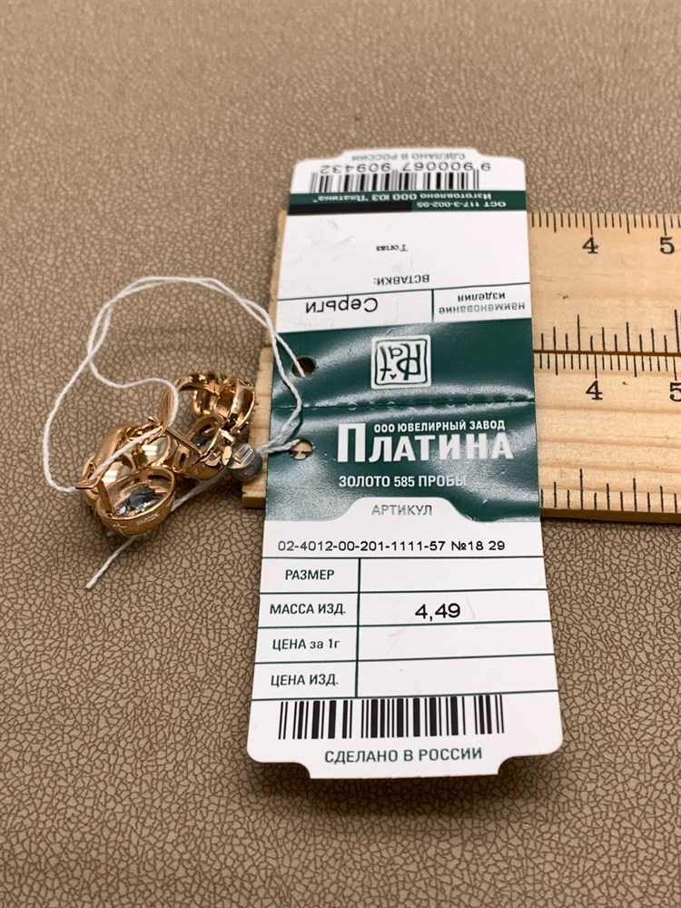 *Серьги Топаз цв Красное и Белое арт. 02-4012-00-201-1111-57-432 (вес 4,49 г)