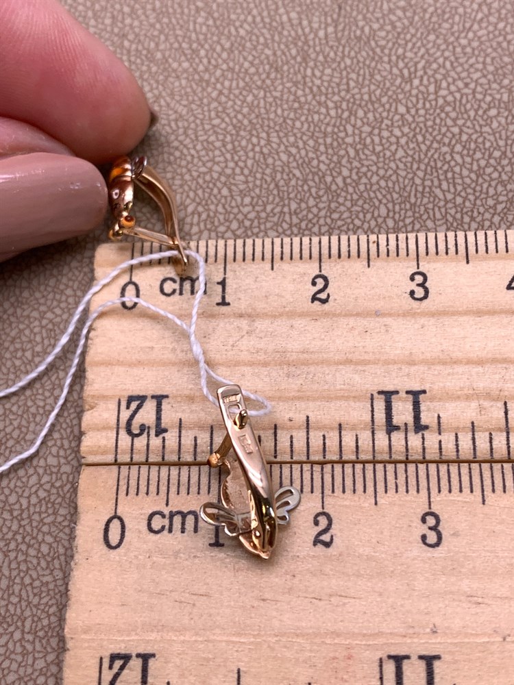 *Серьги Пчелки Эмаль цв Красное арт. 02-4042-00-000-1111-48-443 вес 1,93 г