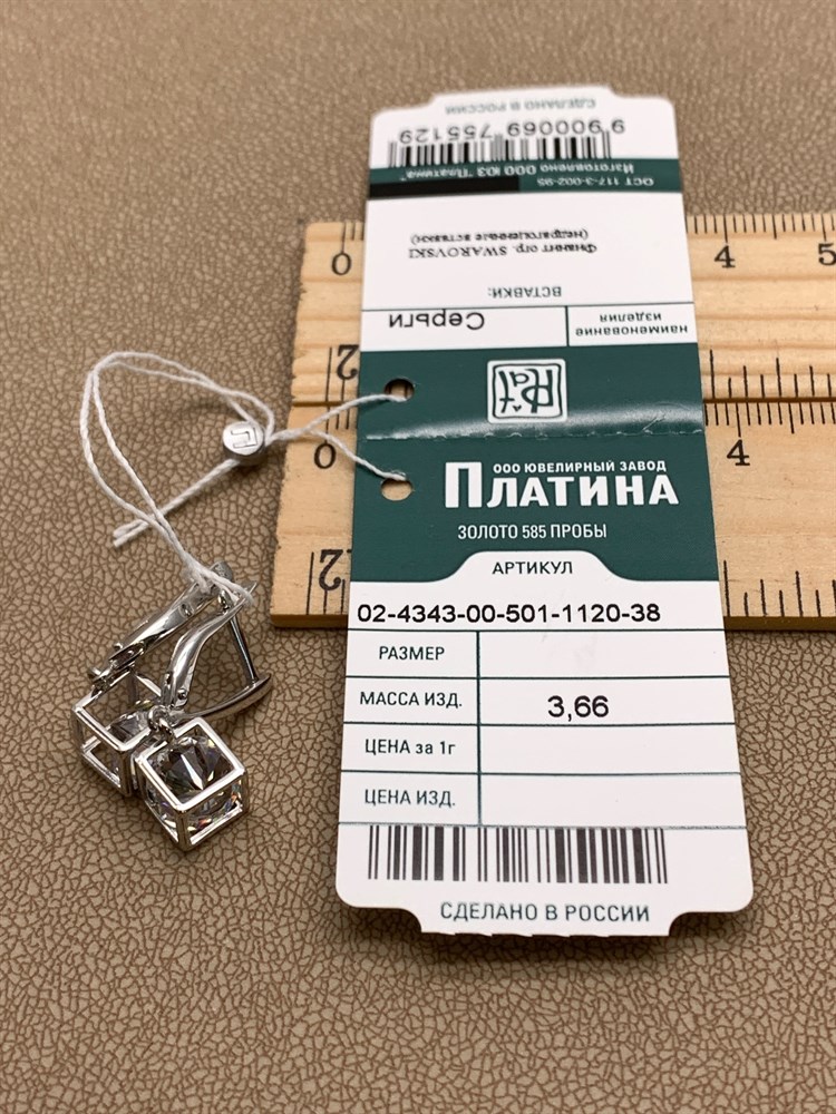 *Серьги Белый Фианит цв Белое арт. 02-4343-00-501-1120-38-129 (вес 3,66 г)