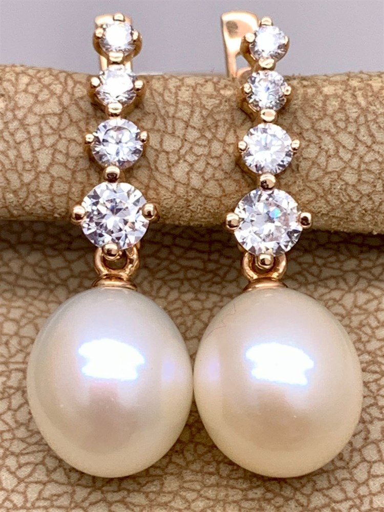 *Серьги д.9,5-10 Белый Жемчуг цв Красное арт. 2.0046.0.d-624 Вес 5,72 г