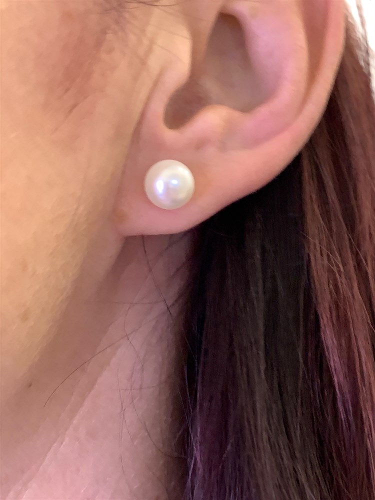 *Пусеты Белый Жемчуг д.8-8,5 цв Лимонное арт 2-107-466-28-892 вес 4,17 г