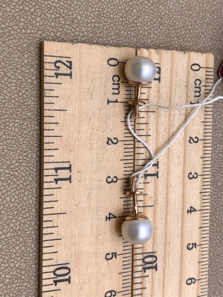 *Серьги Белый Жемчуг д.8-8,5 цв Красное арт. 02-2-401-0500-010-408 Вес 4,38 г