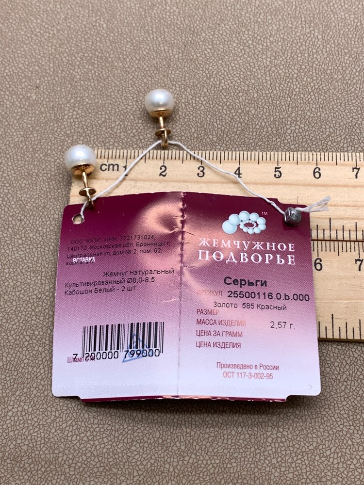*Пусеты д.8-8,5 Белый Жемчуг цв Красное арт. 2.0116.0.b-000 Вес 2,57 г