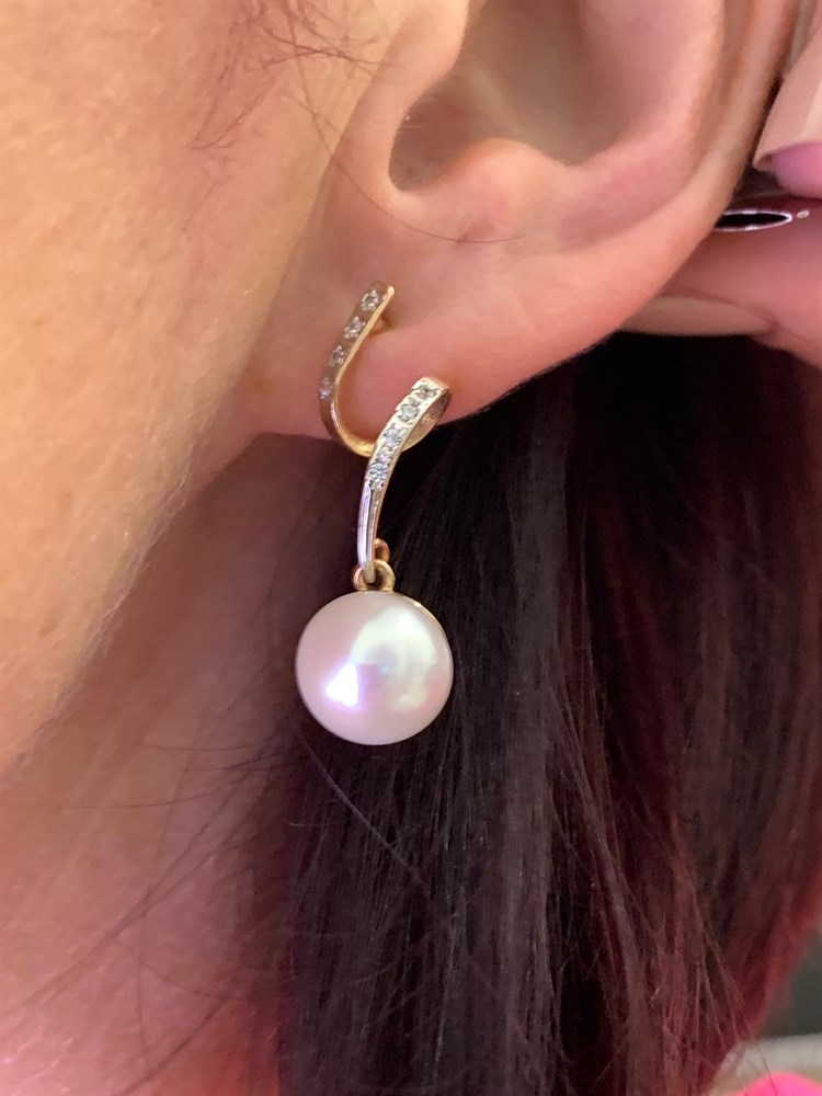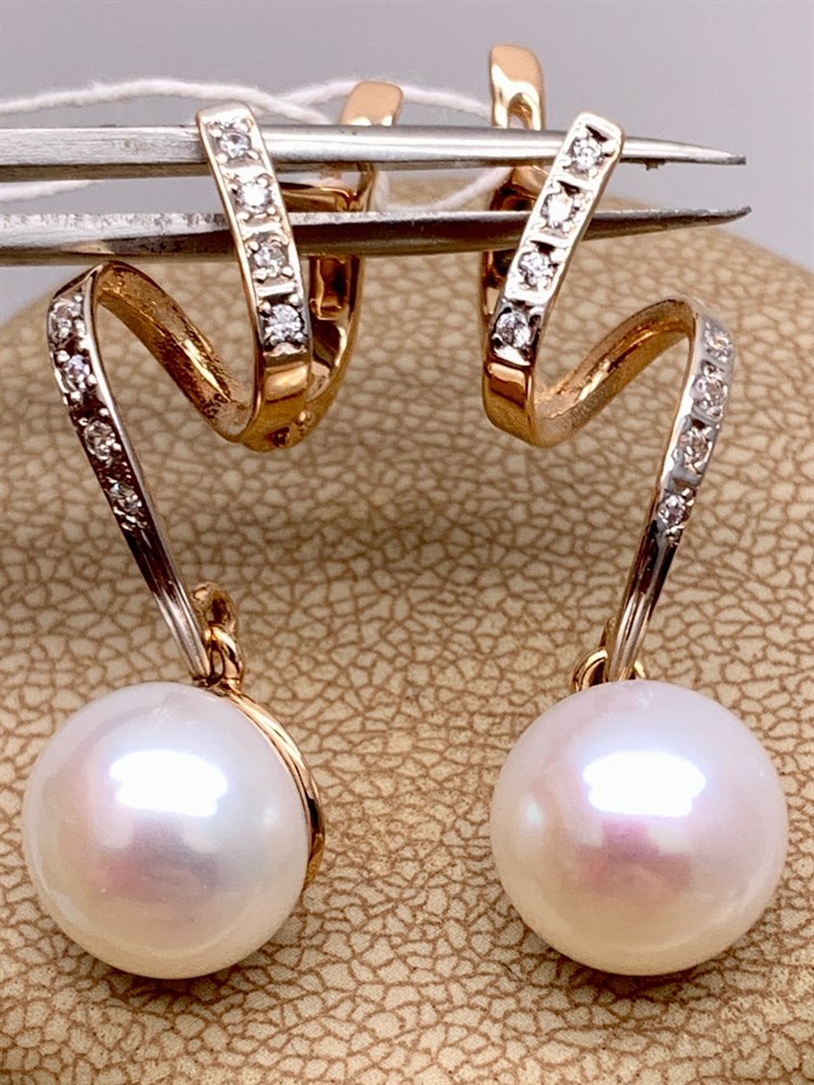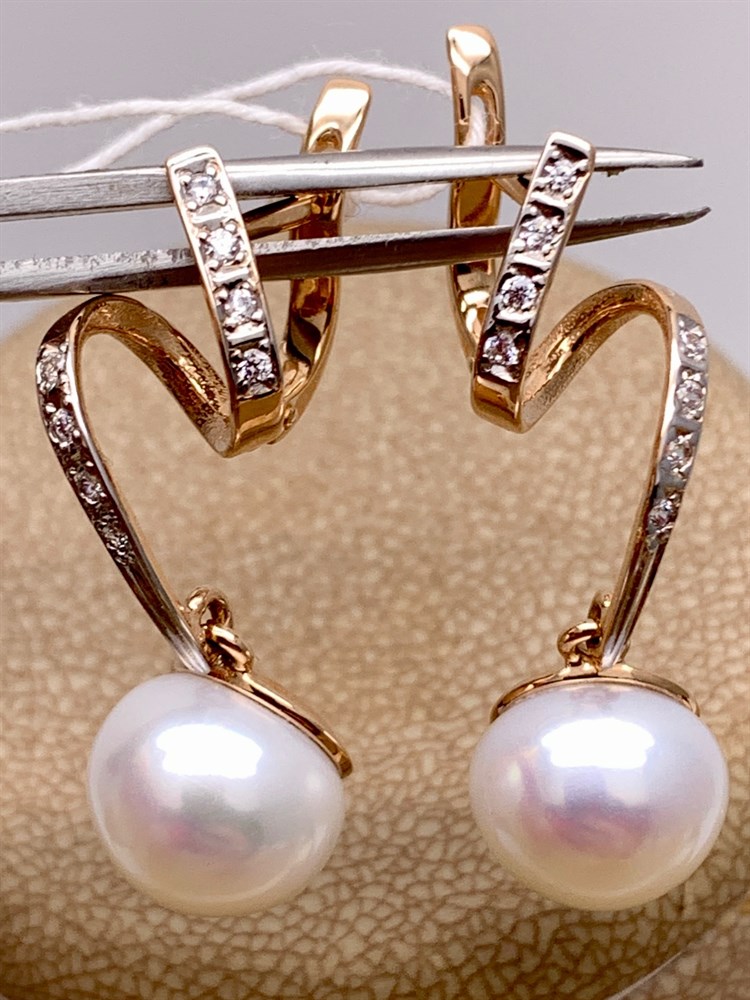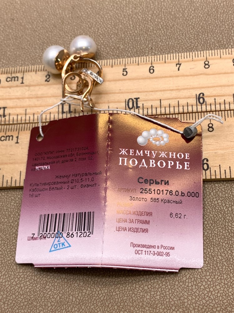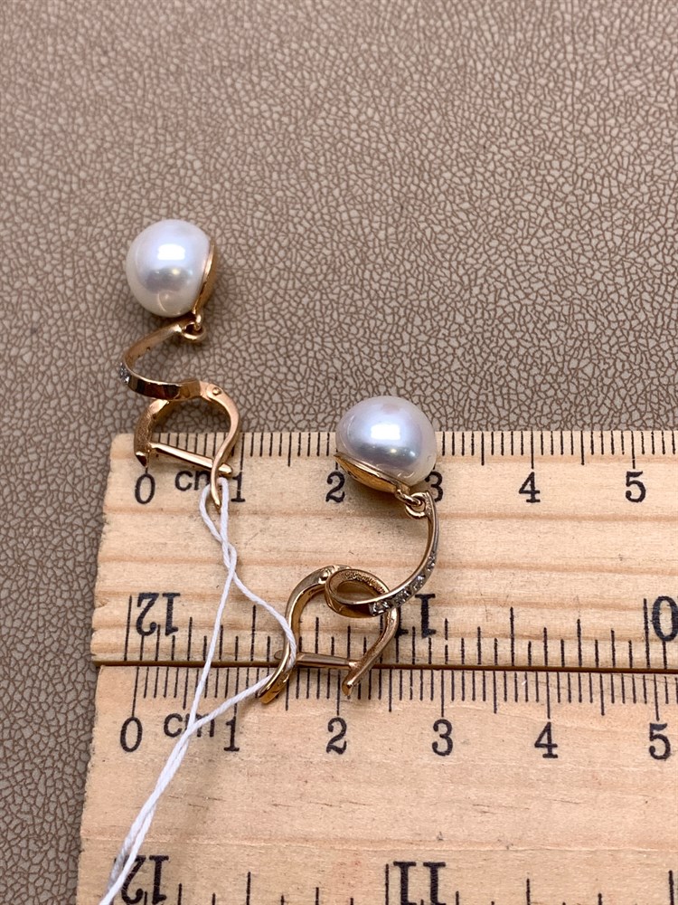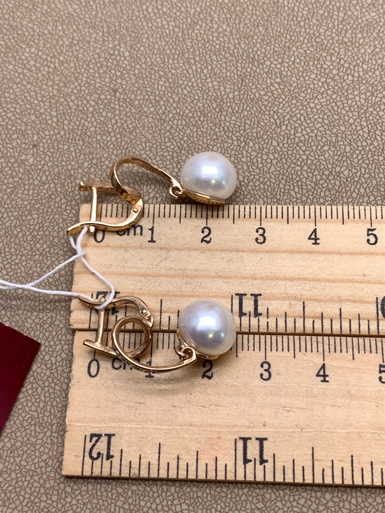 *Серьги Белый Жемчуг д.10,5-11 цв Красное арт. 2.0176.0.b-202 Вес 6,62 г