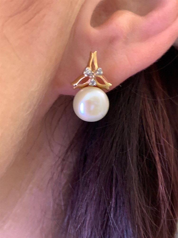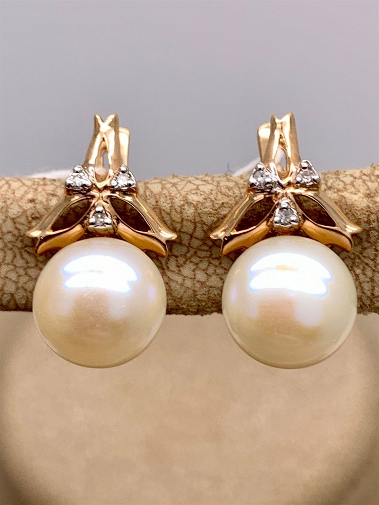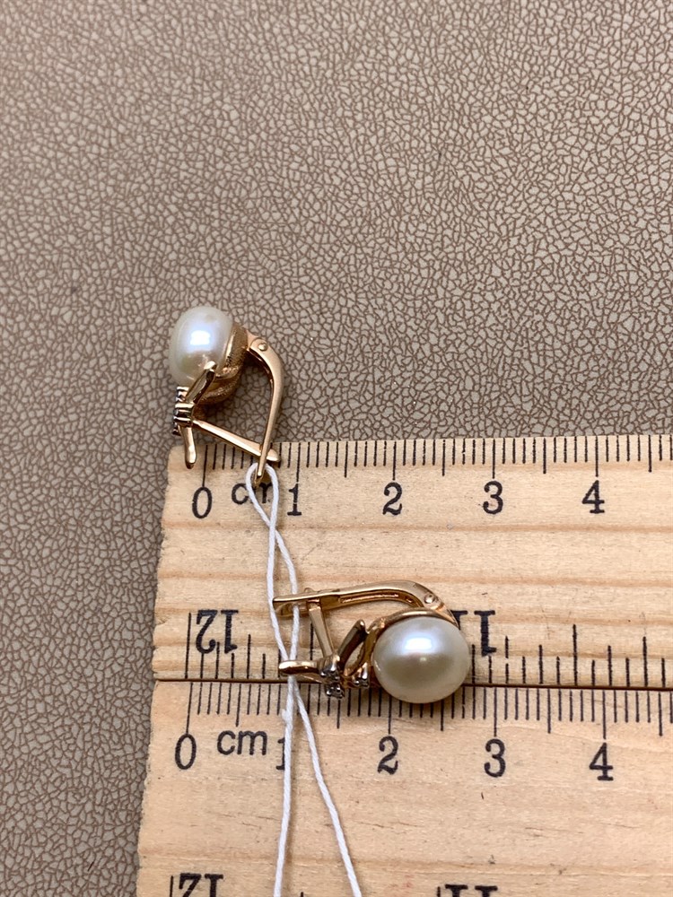 *Серьги д.9-9,5 Белый Жемчуг цв Красное арт. 2.0240.1.b-545 Вес 5,17 г