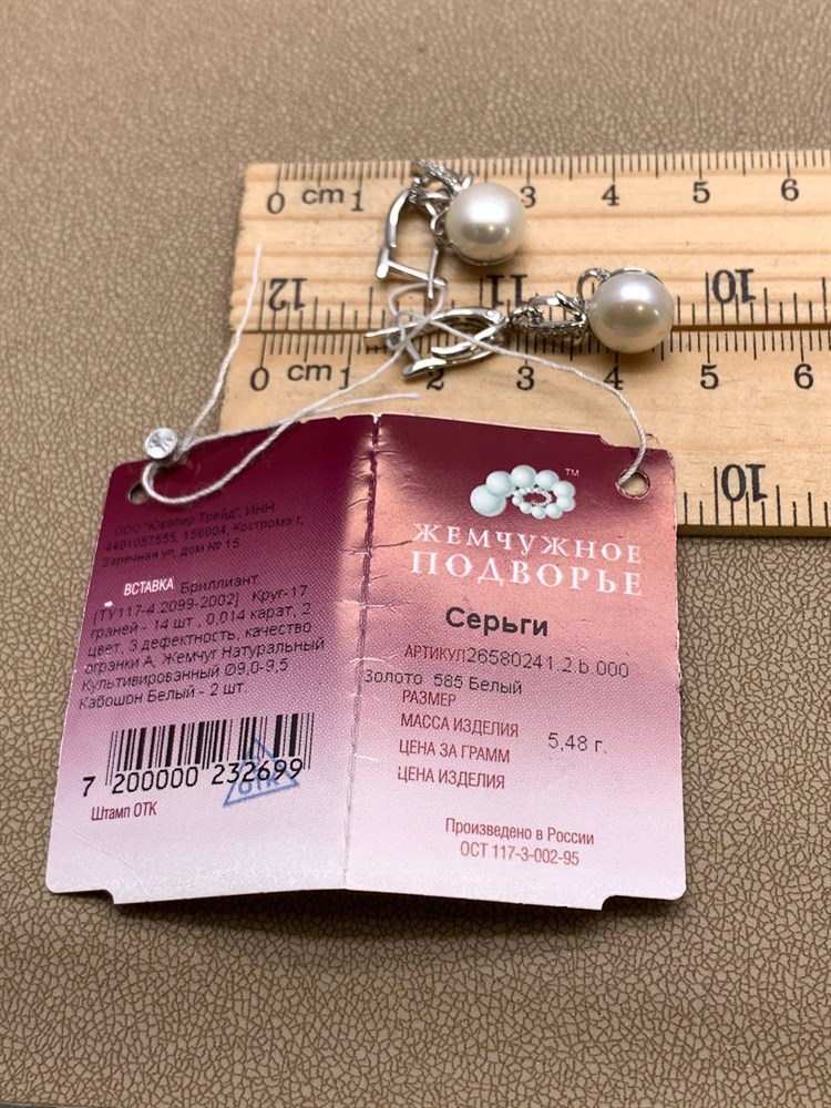 *Серьги Белый Жемчуг д.9-9,5 цв Белое арт. 2.0241.2.b-699 Вес 5,48 г