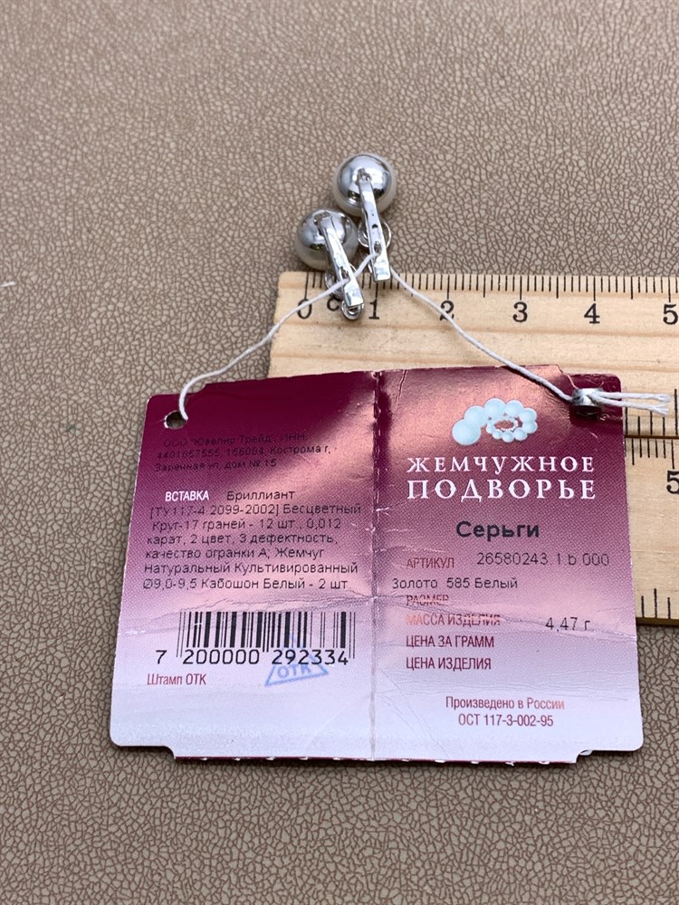 *Серьги Белый Жемчуг д.9-9,5 цв Белое арт. 2.0243.1.b-334 Вес 4,47 г