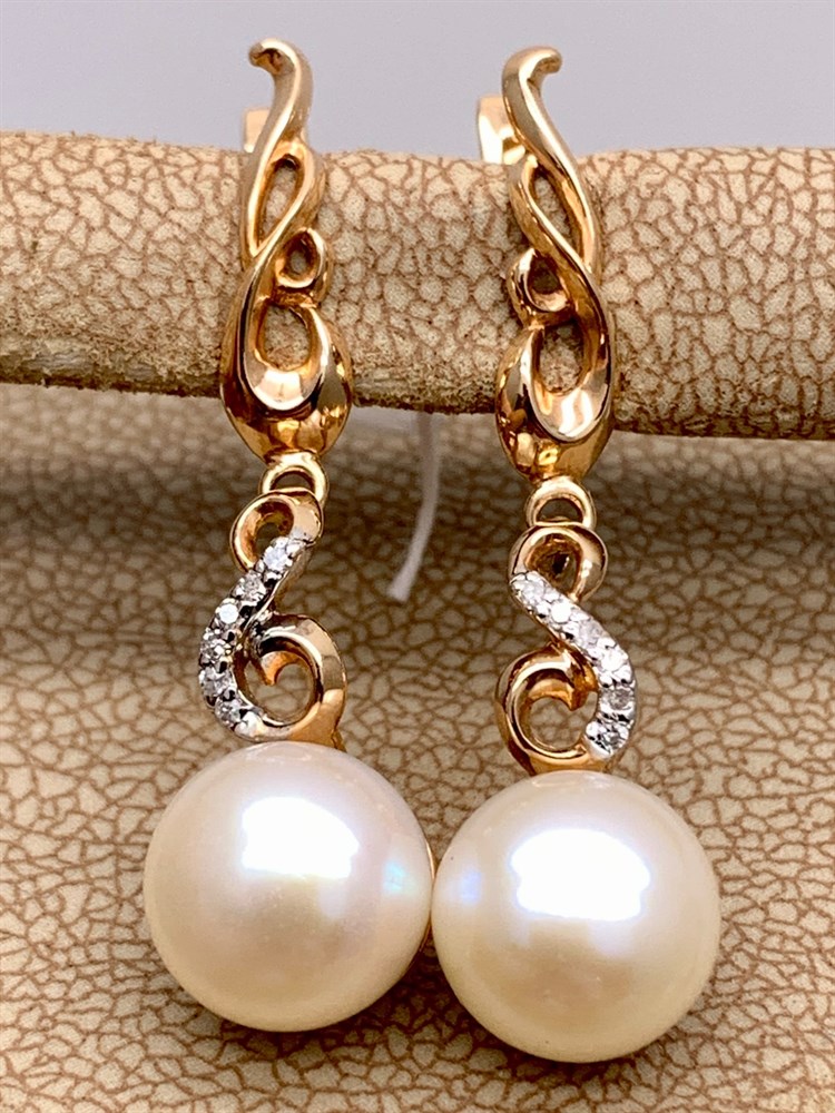 *Серьги д.9-9,5 Белый Жемчуг цв Красное арт. 2.0243.2.b-766 Вес 5,21 г