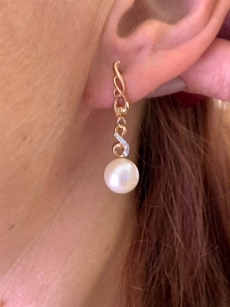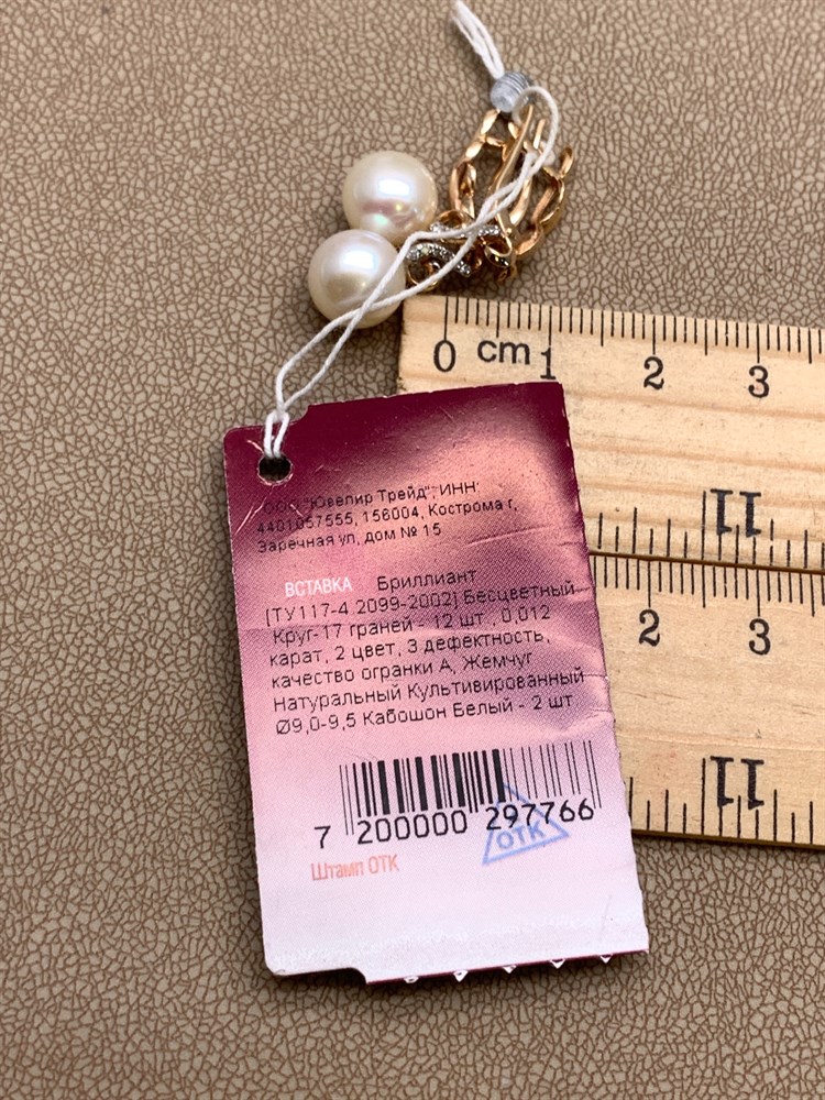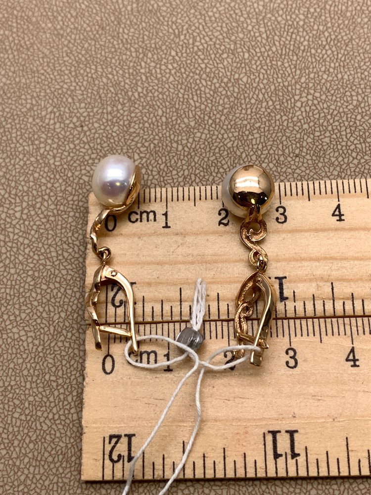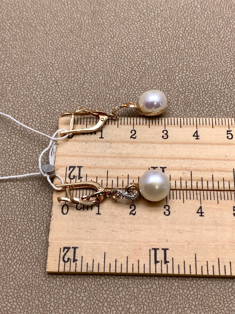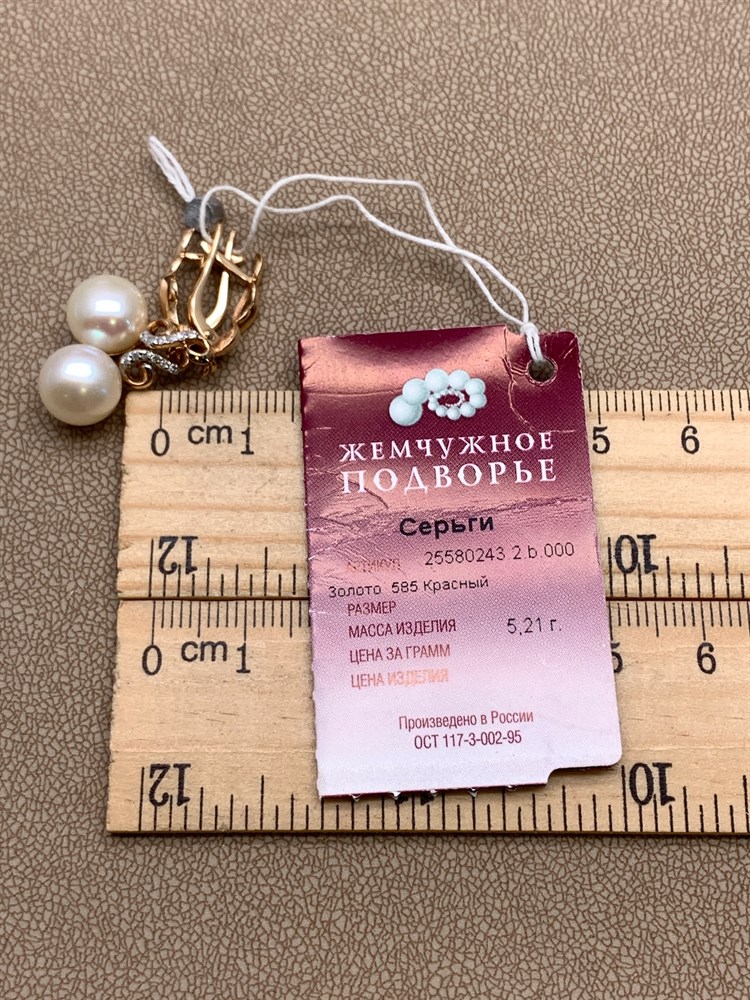 *Серьги д.9-9,5 Белый Жемчуг цв Красное арт. 2.0243.2.b-766 Вес 5,21 г