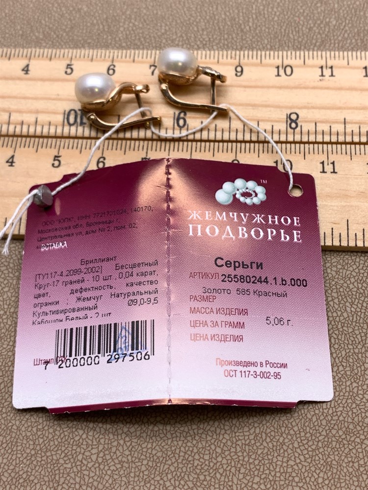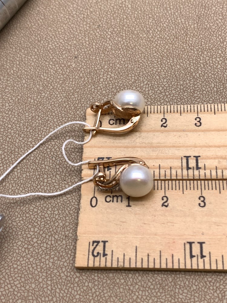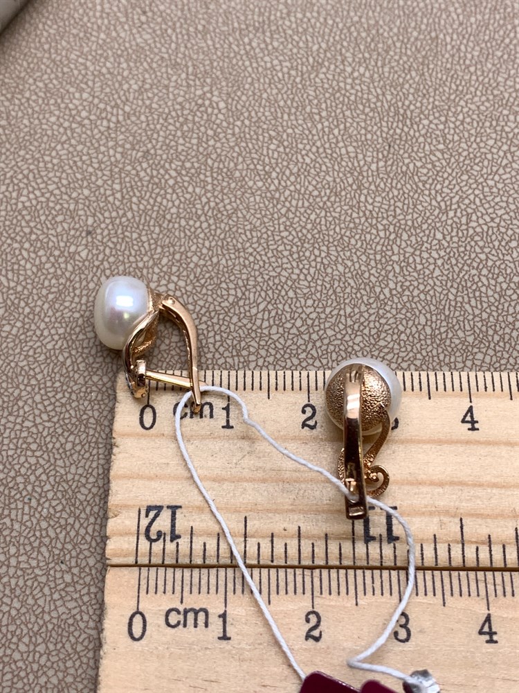 *Серьги д.8,5-9 Белый Жемчуг цв Красное арт. 2.0244.1.b-506 Вес 5,06 г