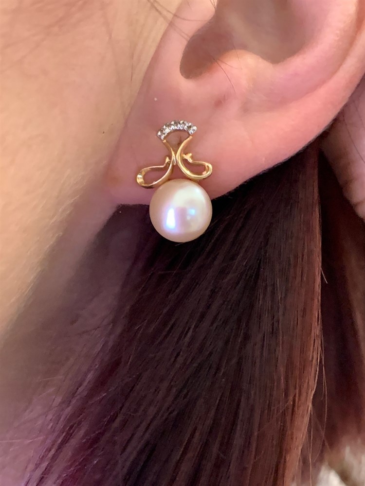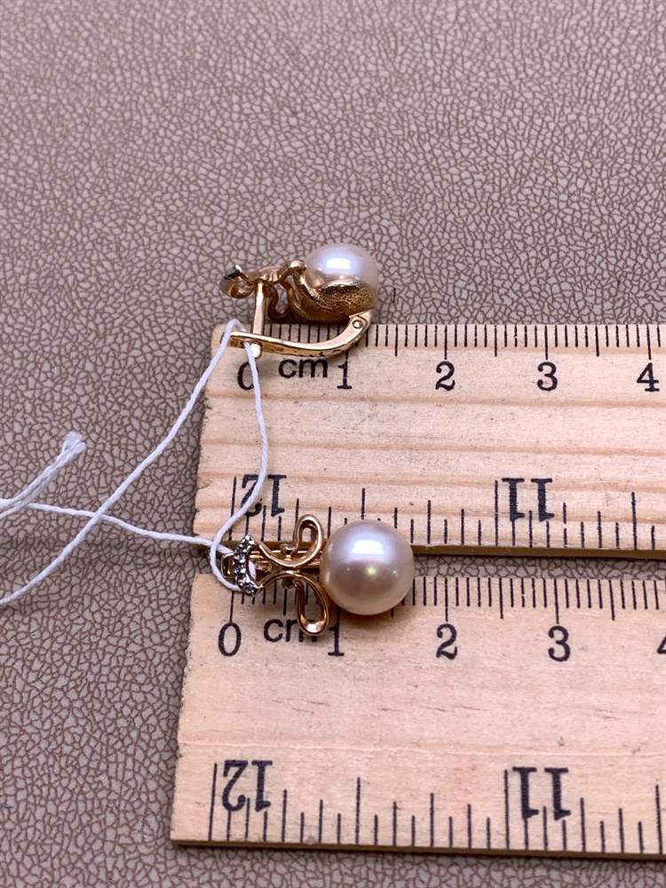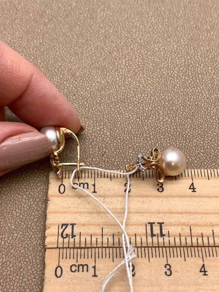 *Серьги Белый Жемчуг д.8,5-9 цв Красное арт. 2.0247.1.b-775 Вес 4,52 г