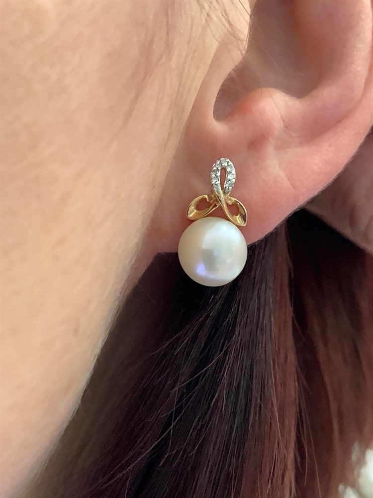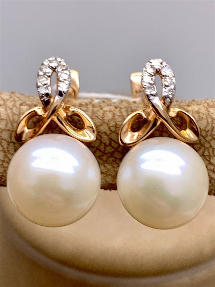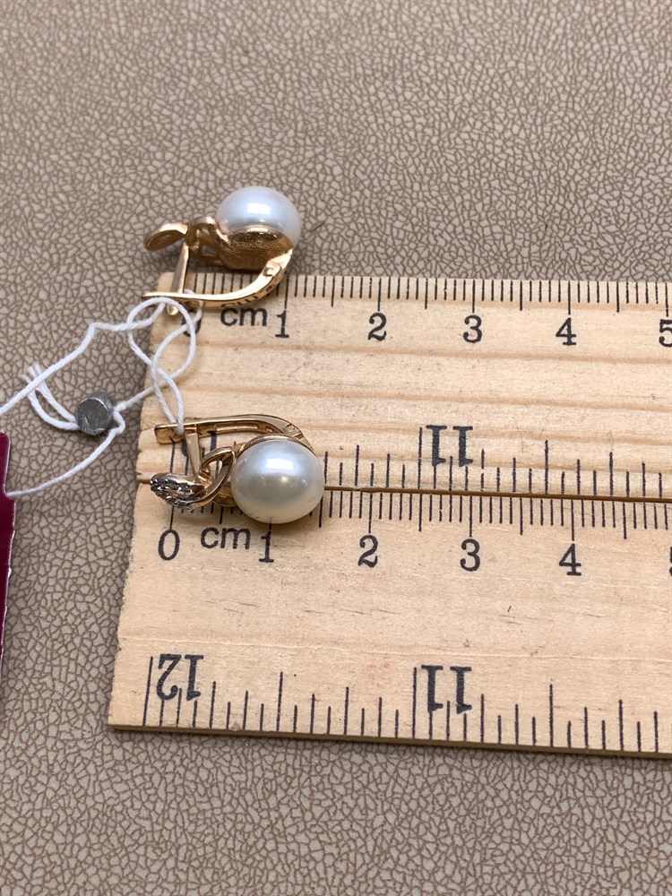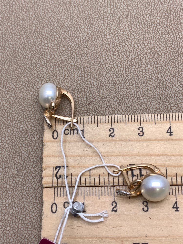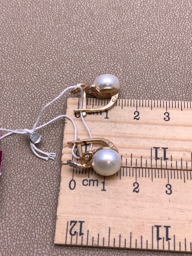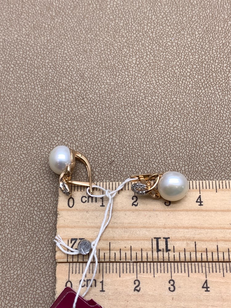 *Серьги Белый Жемчуг д.9-9,5 цв Красное арт. 2.0249.1.b-696 Вес 4,82 г