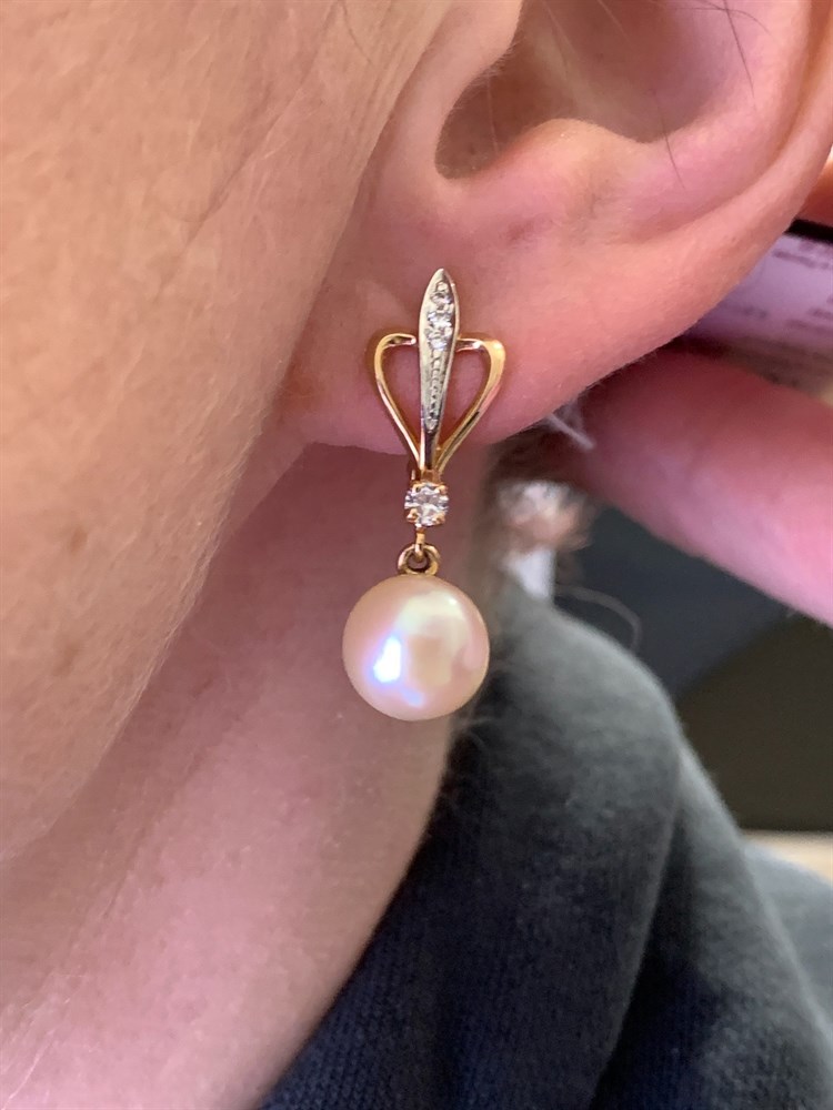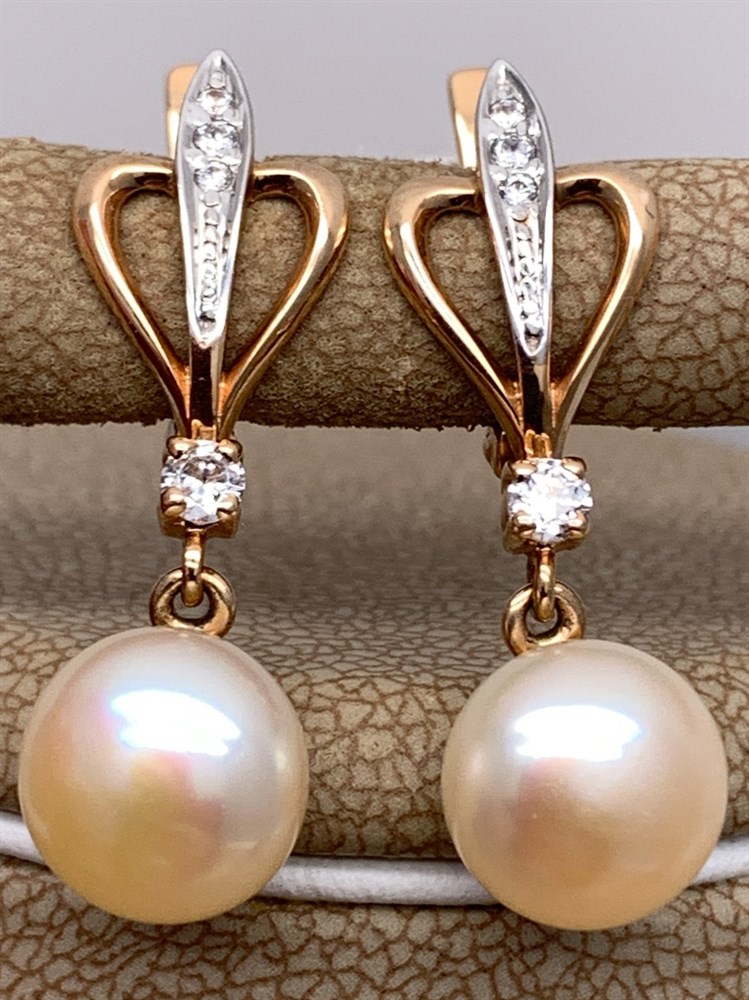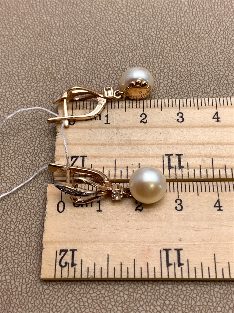 *Серьги д.9,5-10 Золотистый Жемчуг цв Красное арт. 2.0558.0.b-971 Вес 5,61 г