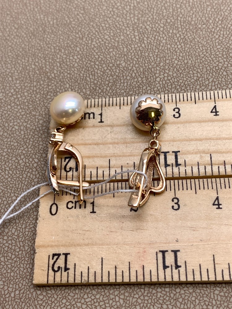 *Серьги Белый Жемчуг цв Красное д.9,5-10 арт. 2.0180.3.d-524 Вес 6,17 г