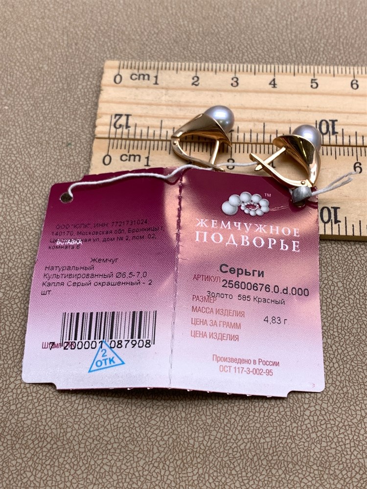 *Серьги д.6,5-7 Белый Жемчуг цв Красное арт. 2.0676.0.d-544 Вес 4,88 г