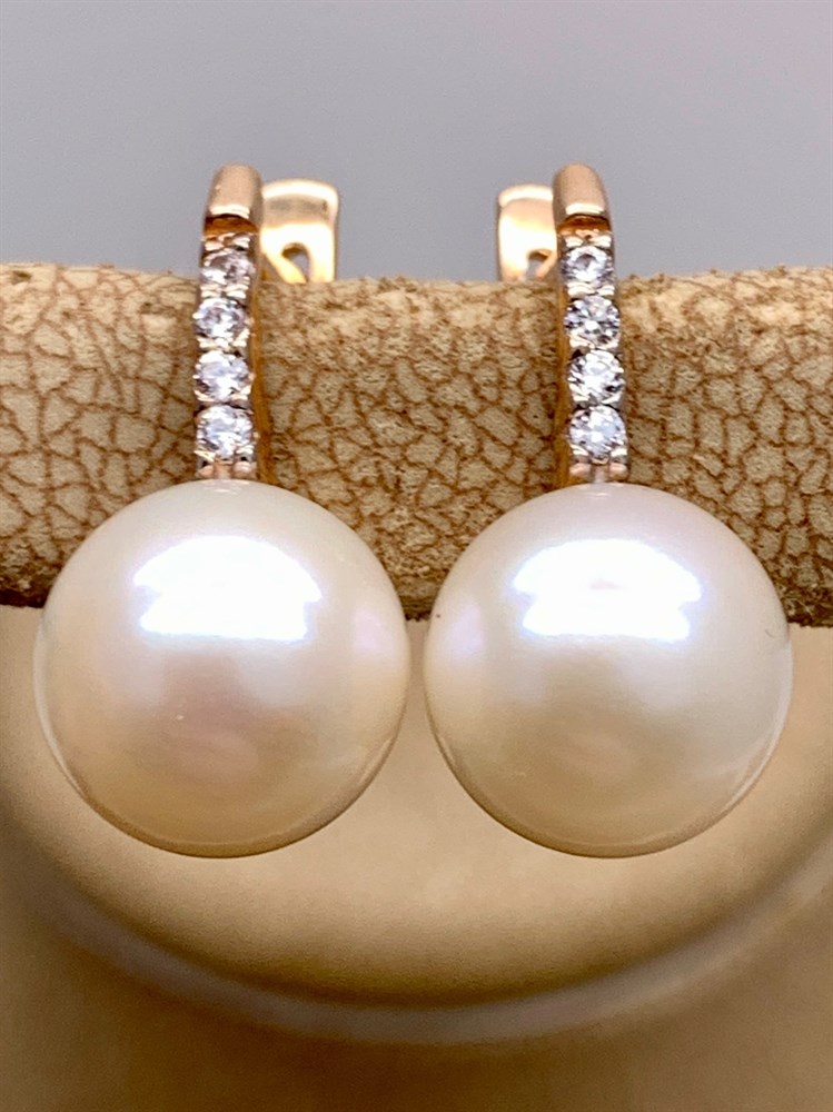*Серьги Белый Жемчуг д.10-10,5 цв Красное арт. 2.0815.0.b-324 Вес 5,32 г