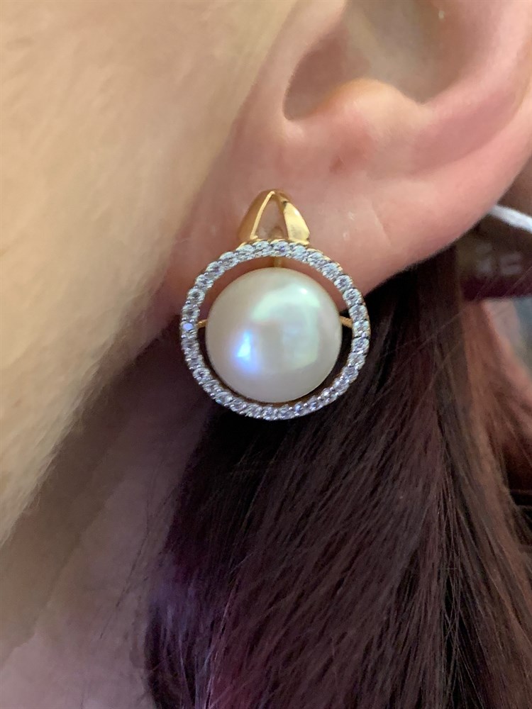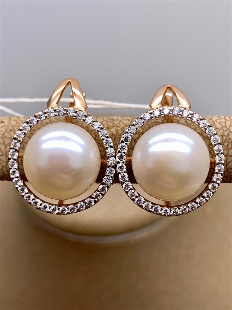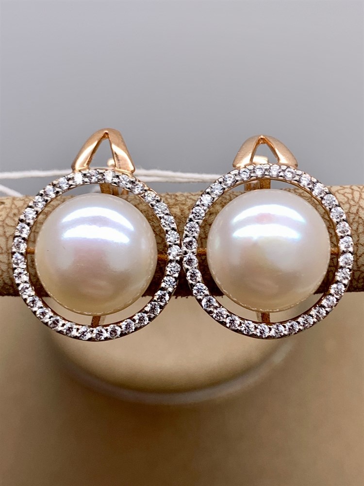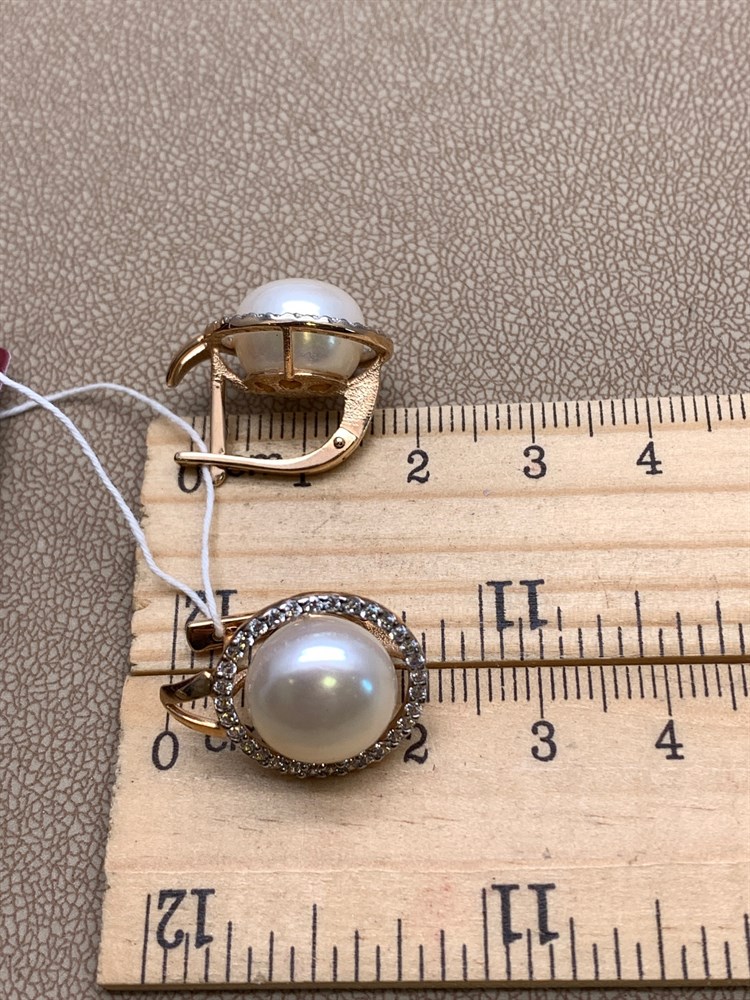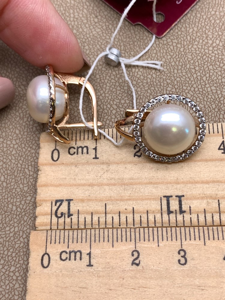 *Серьги Белый Жемчуг д.11,5-12 цв Красное арт. 2.0830.4.b-157 Вес 8,22 г