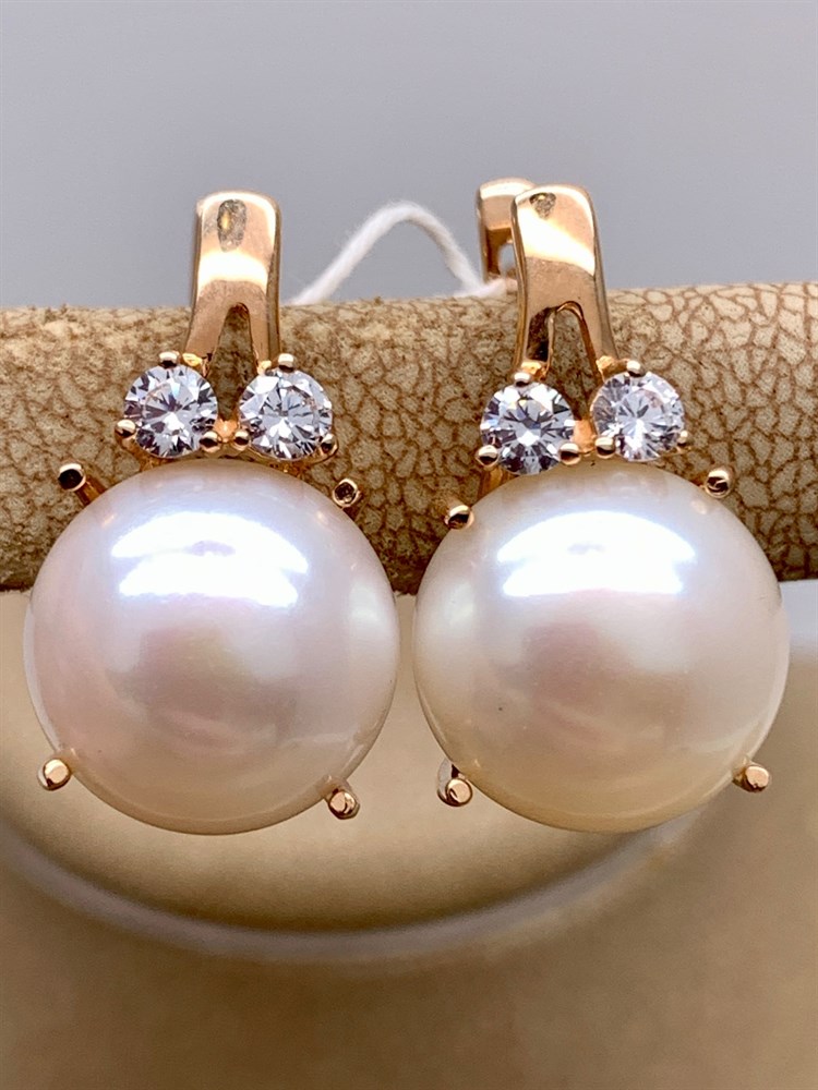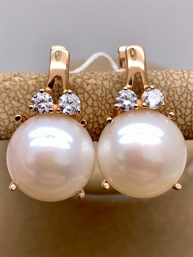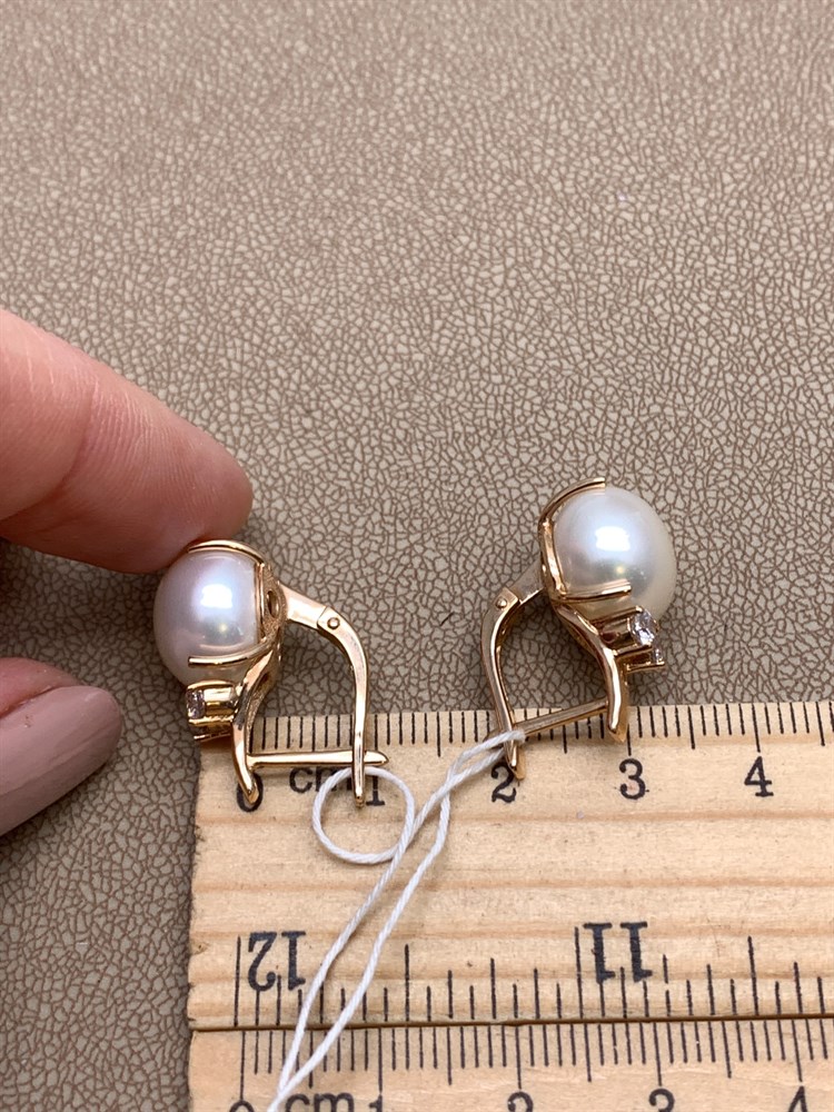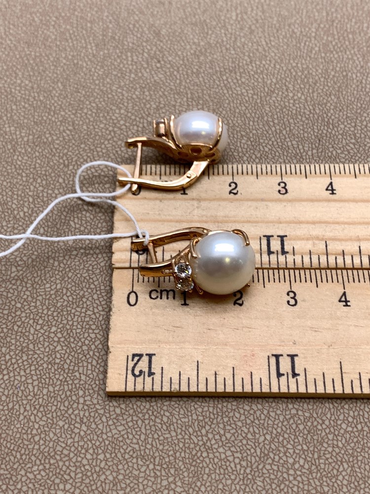 *Серьги Белый Жемчуг д.12-12,5 цв Красное арт. 2.0832.0.b-907 Вес 8,77 г
