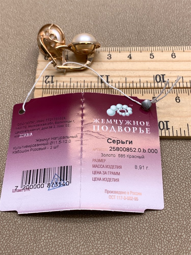 *Серьги Розовый Жемчуг д.11,5-12 цв Красное арт. 2.0852.0.b-540 Вес 8,91 г