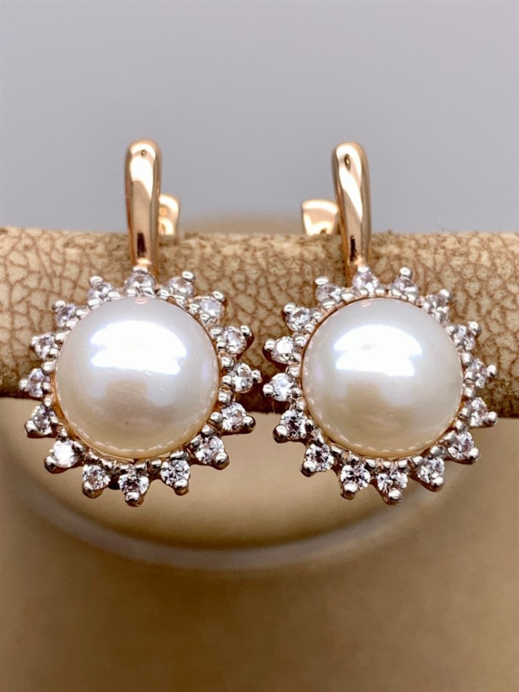 *Серьги Белый Жемчуг д.8,5-9 цв Красное арт. 2.0866.0.b-558 Вес 5,74 г