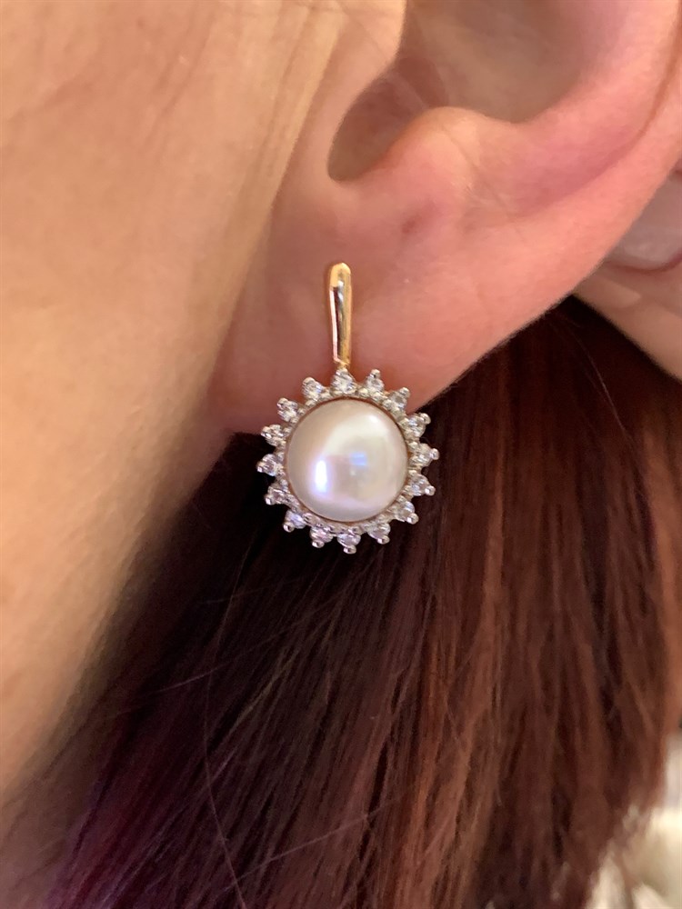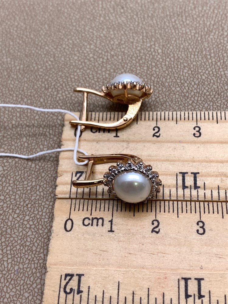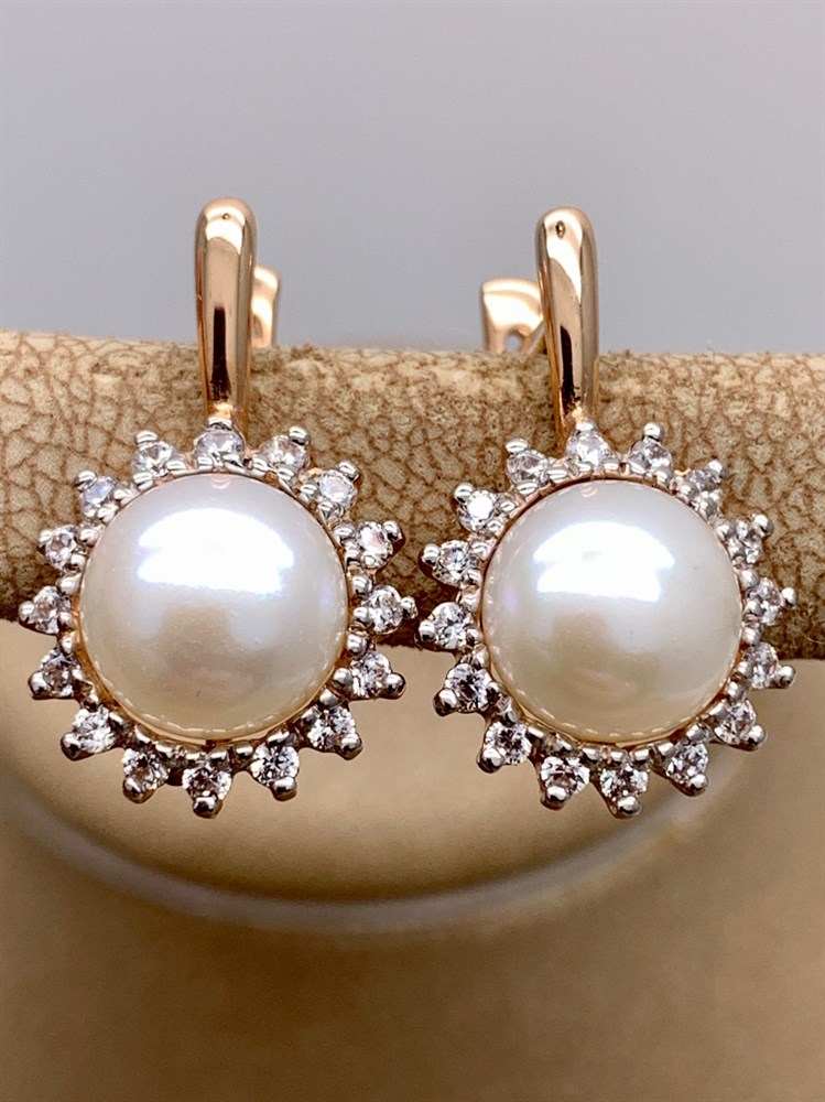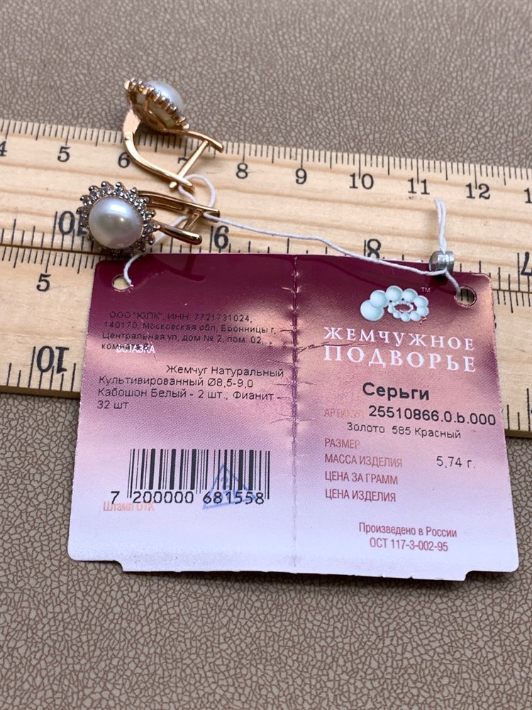 *Серьги Белый Жемчуг д.8,5-9 цв Красное арт. 2.0866.0.b-558 Вес 5,74 г