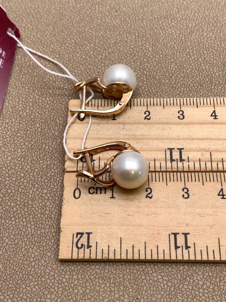 *Серьги Белый Жемчуг д.10,5-11 цв Красное арт. 2.0882.0.b-896 Вес 6,35 г
