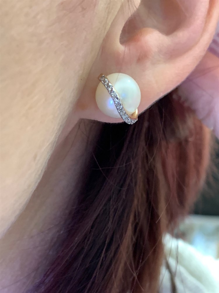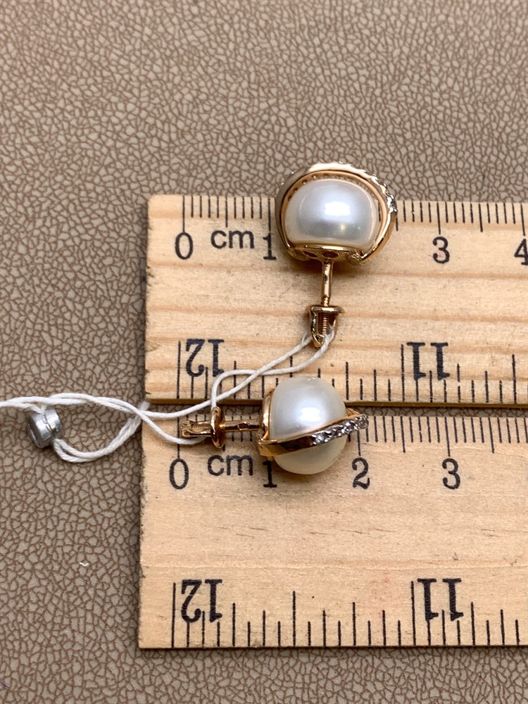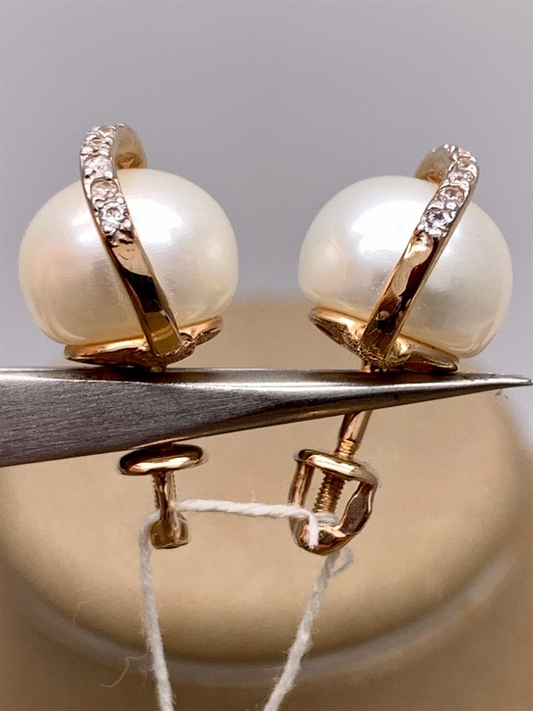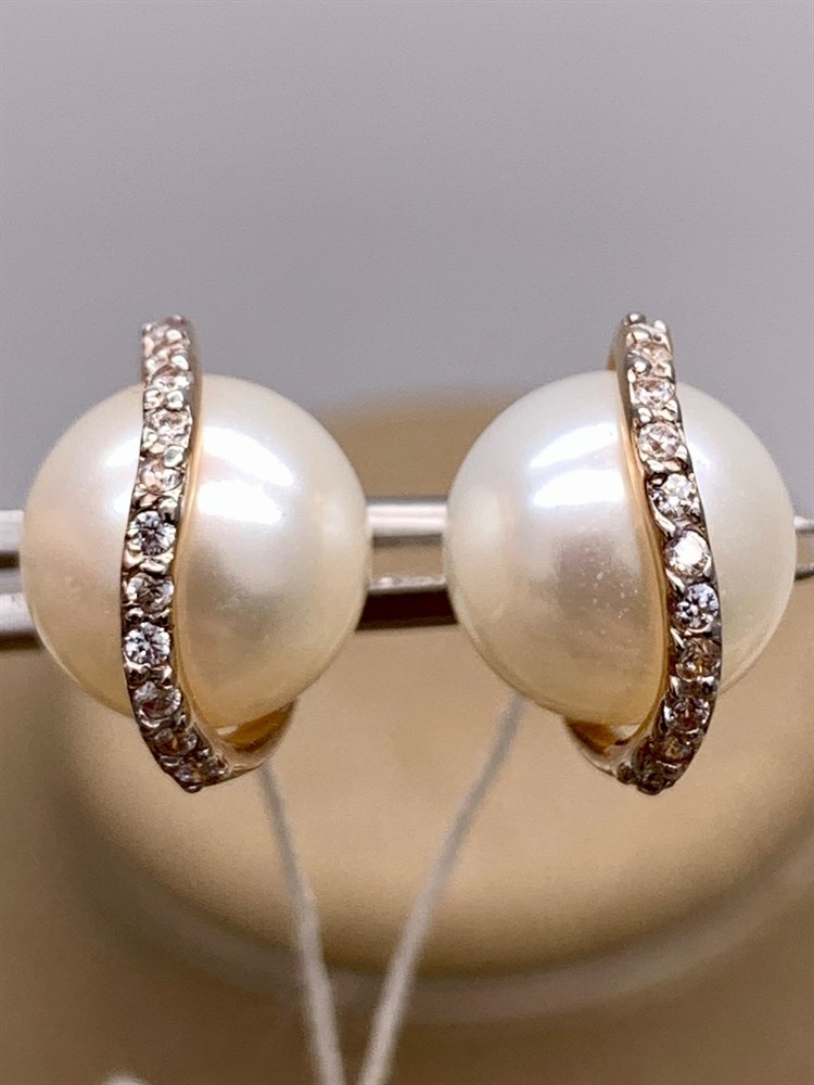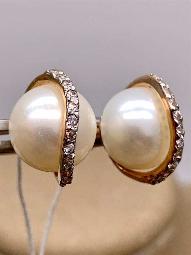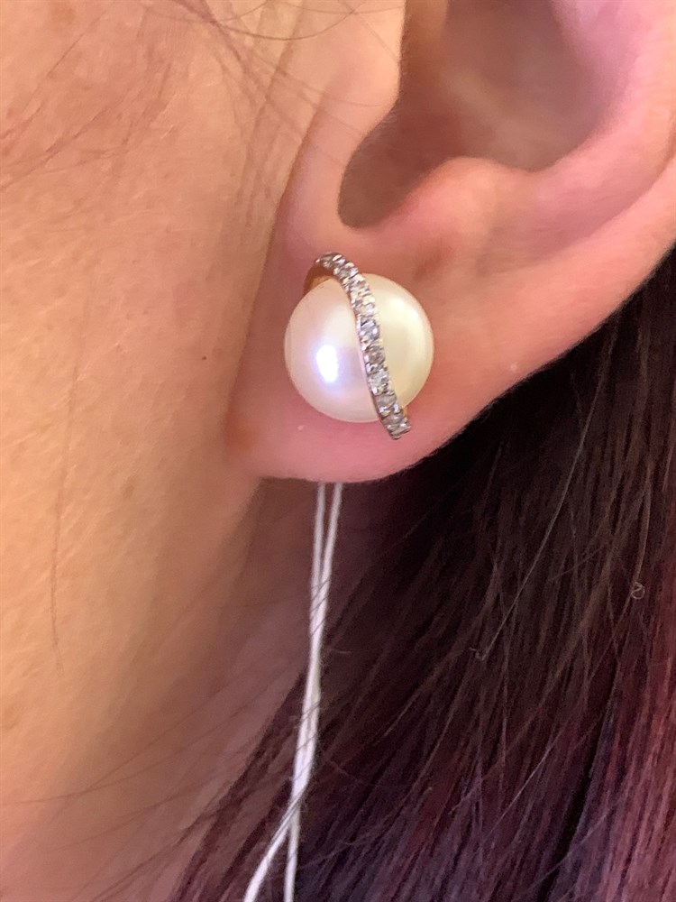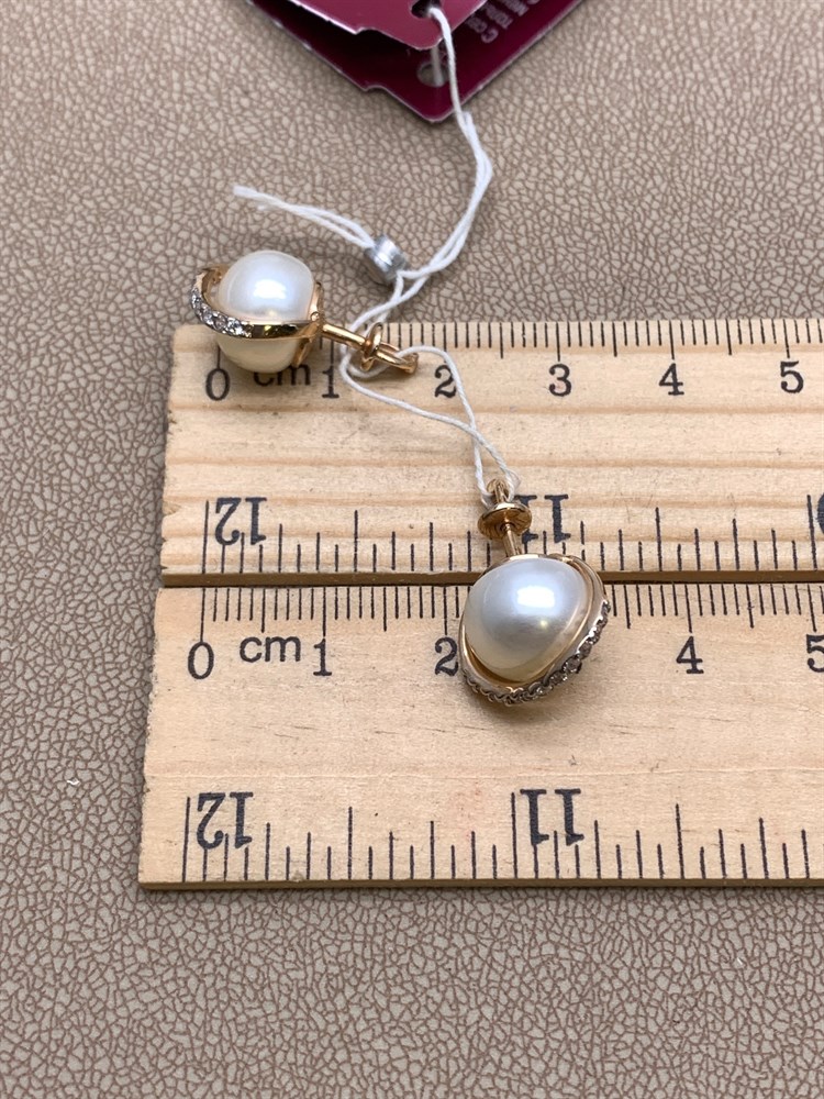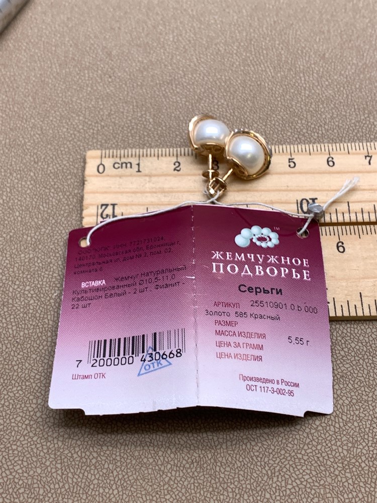 *Пусеты Белый Жемчуг д.10,5-11 цв Красное арт. 2.0901.0.b-668 Вес 5,55 г