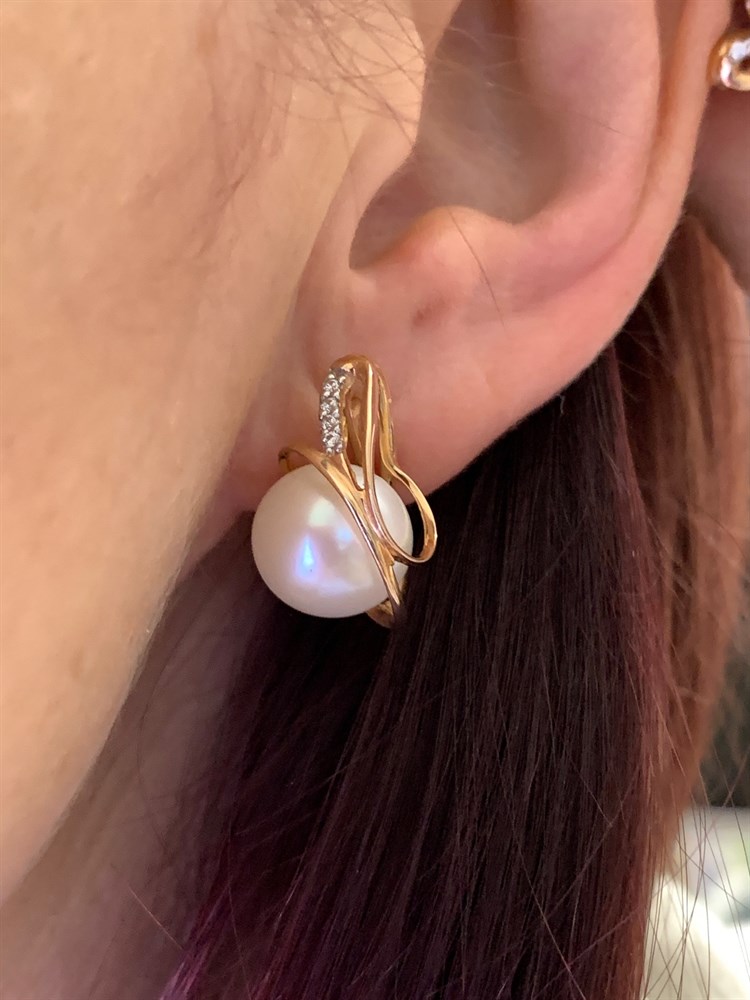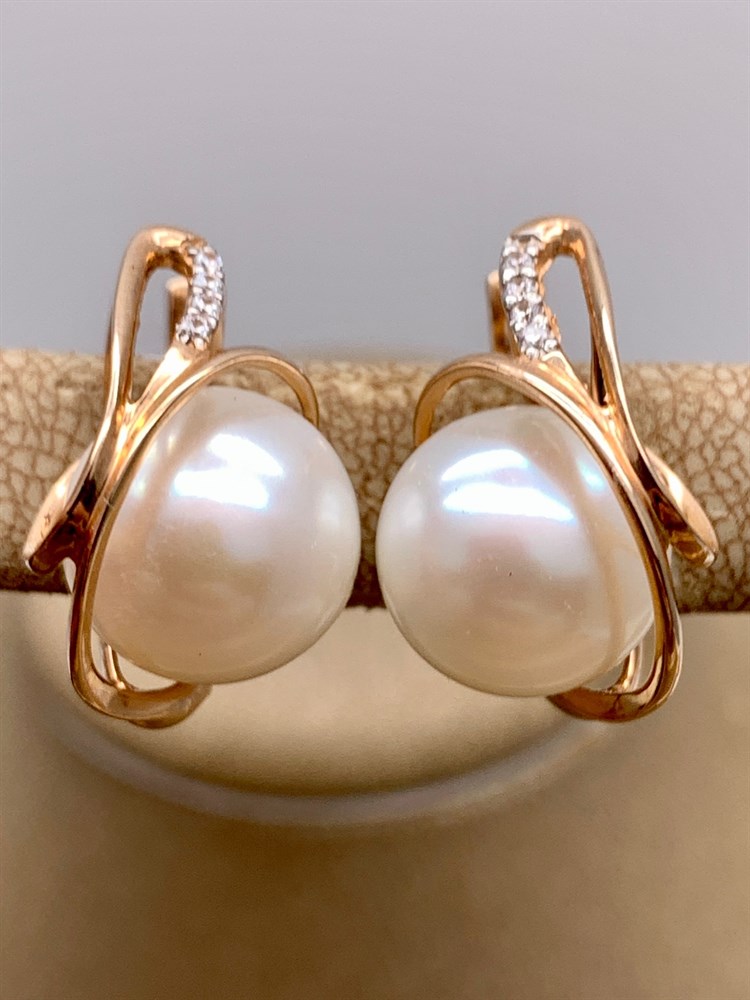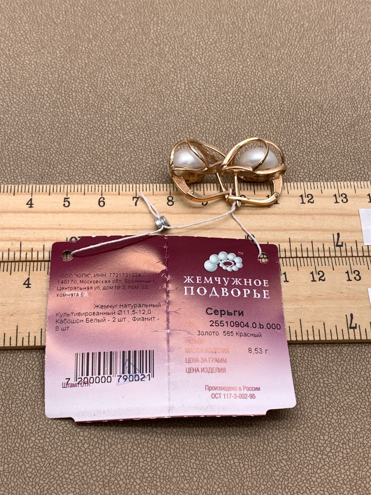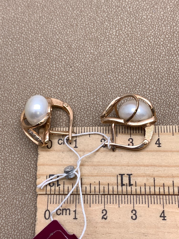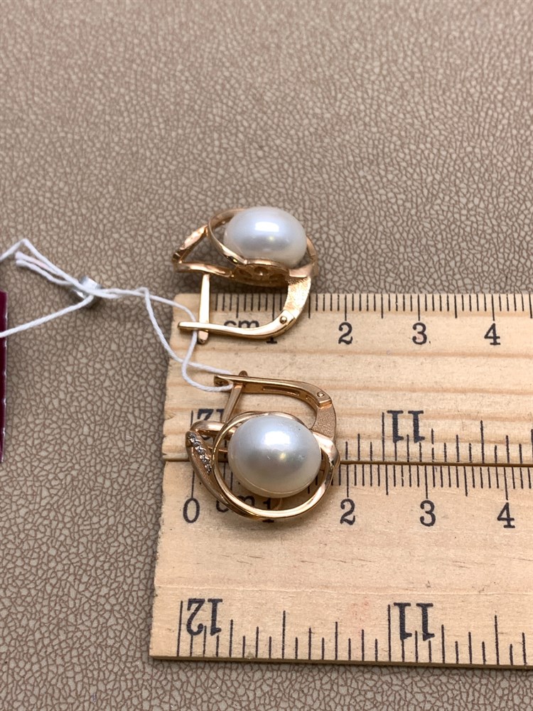 *Серьги Белый Жемчуг д.11,5-12 цв Красное арт. 2.0904.0.b-021 Вес 8,53 г
