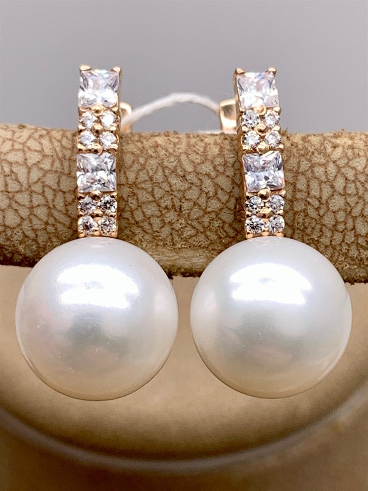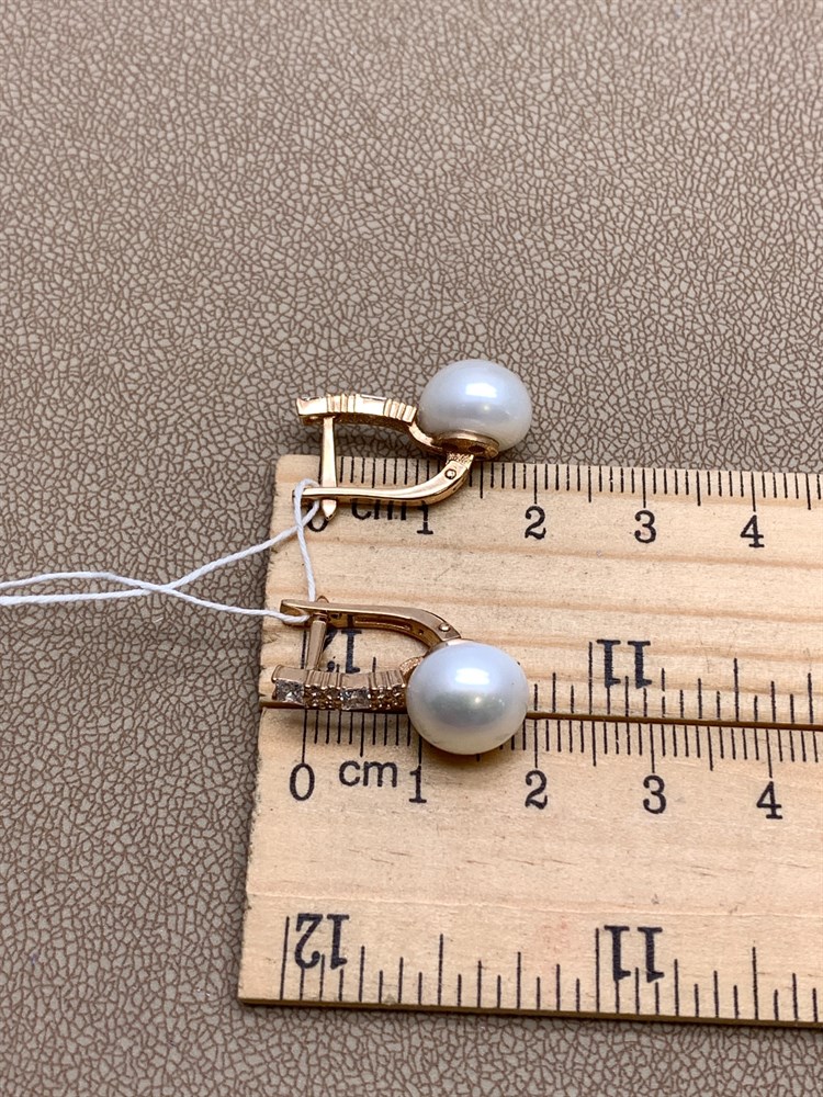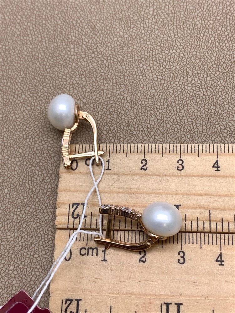 *Серьги Белый Жемчуг д.10-10,5 цв Красное арт. 2.0966.0.b-589 Вес 5,57 г