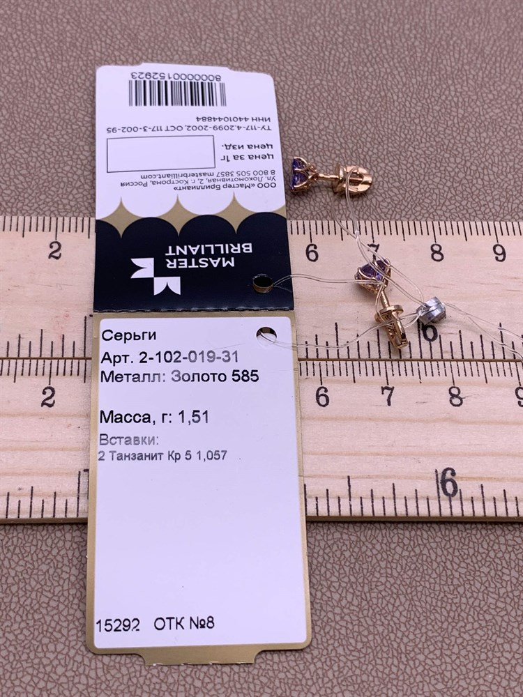 *Серьги Танзанит цв Красное арт. 02-01671-01-212-01-05-301, (вес 2,6 г)