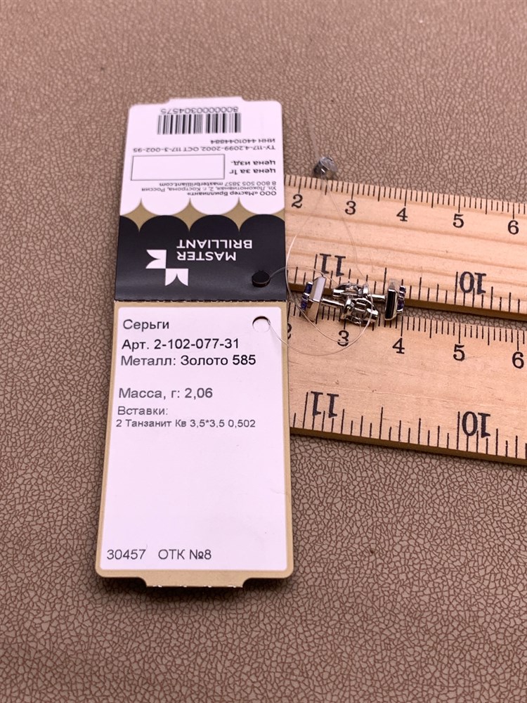 *Пусеты Танзанит цв Белое арт. 2-102-077-31-575 (вес 2,06 г)