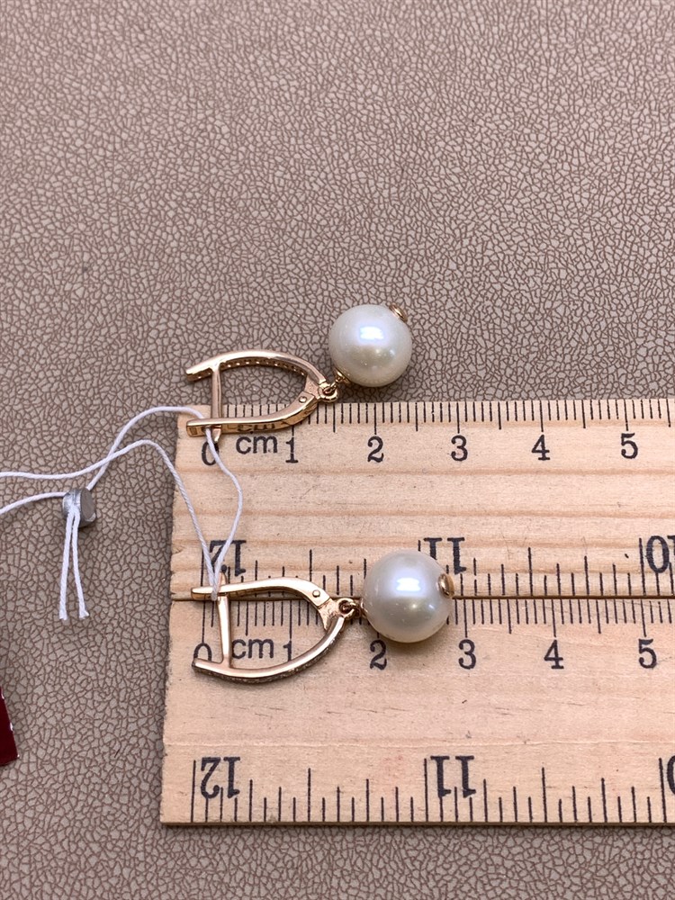 *Серьги Белый Жемчуг д.10-10,5 цв Красное арт. 2.0827.0.b-287 Вес 5,63 г