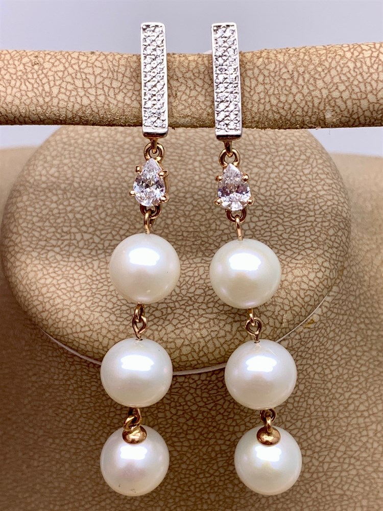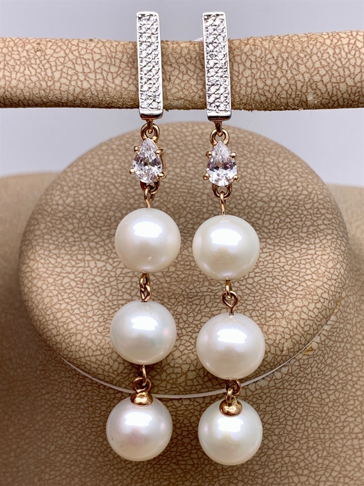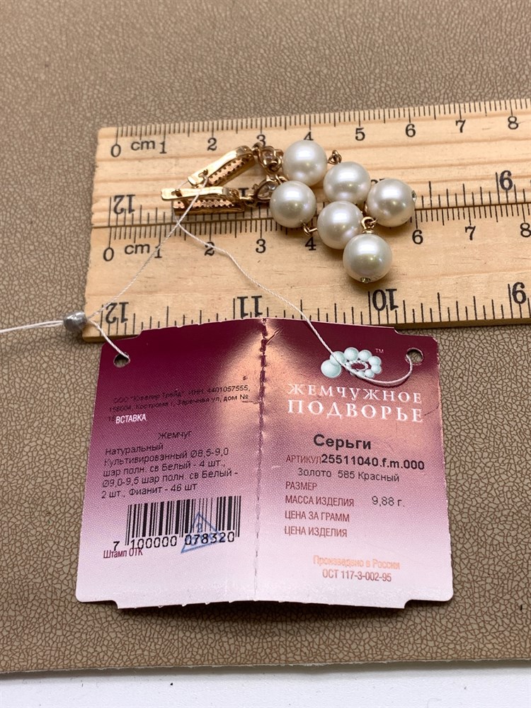 *Серьги д.8,5-9 Белый Жемчуг цв Красное арт. 2.1040.f.m-320 Вес 9,88 г