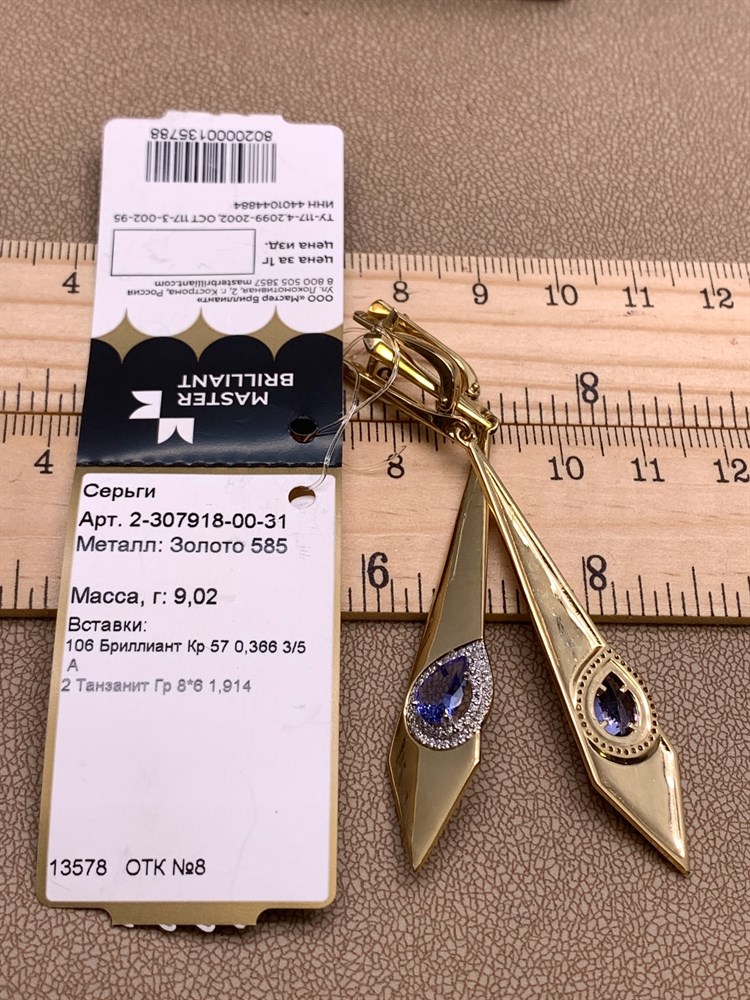 *Серьги Танзанит цв Лимонное арт. 2-307918-00-31-788 (вес 9,02 г)