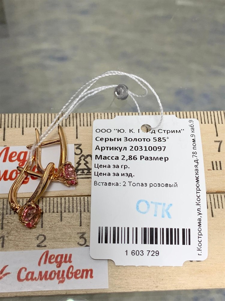 *Серьги Розовый Топаз цв Красное арт. 20310097-729 вес 2,86 г
