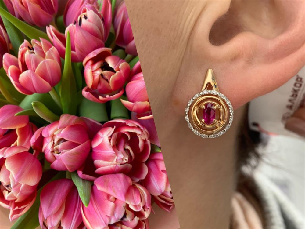 *Серьги Петли Одуванчик Рубин цв Красное арт 2-108483-00-03-401 вес 3,97 г