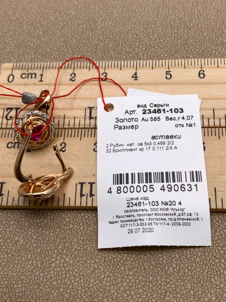 *Серьги Рубин цв Красное арт. 23461-103-631 вес 4,07 г