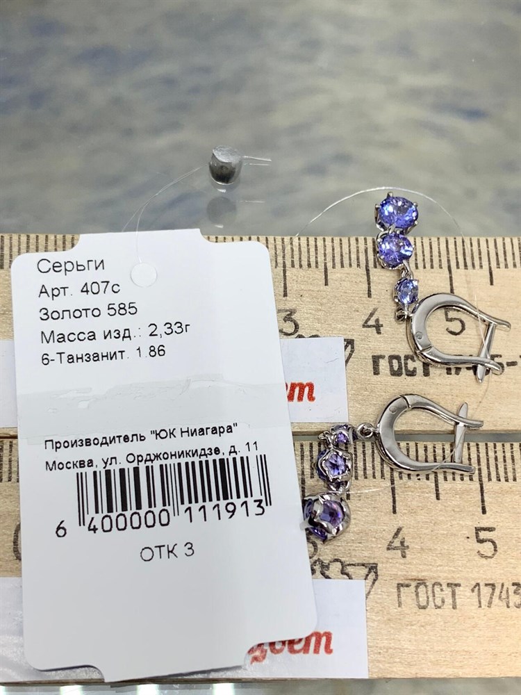 *Серьги Танзанит цв Белое арт 2-207858-00-31-738 вес 3,11 г