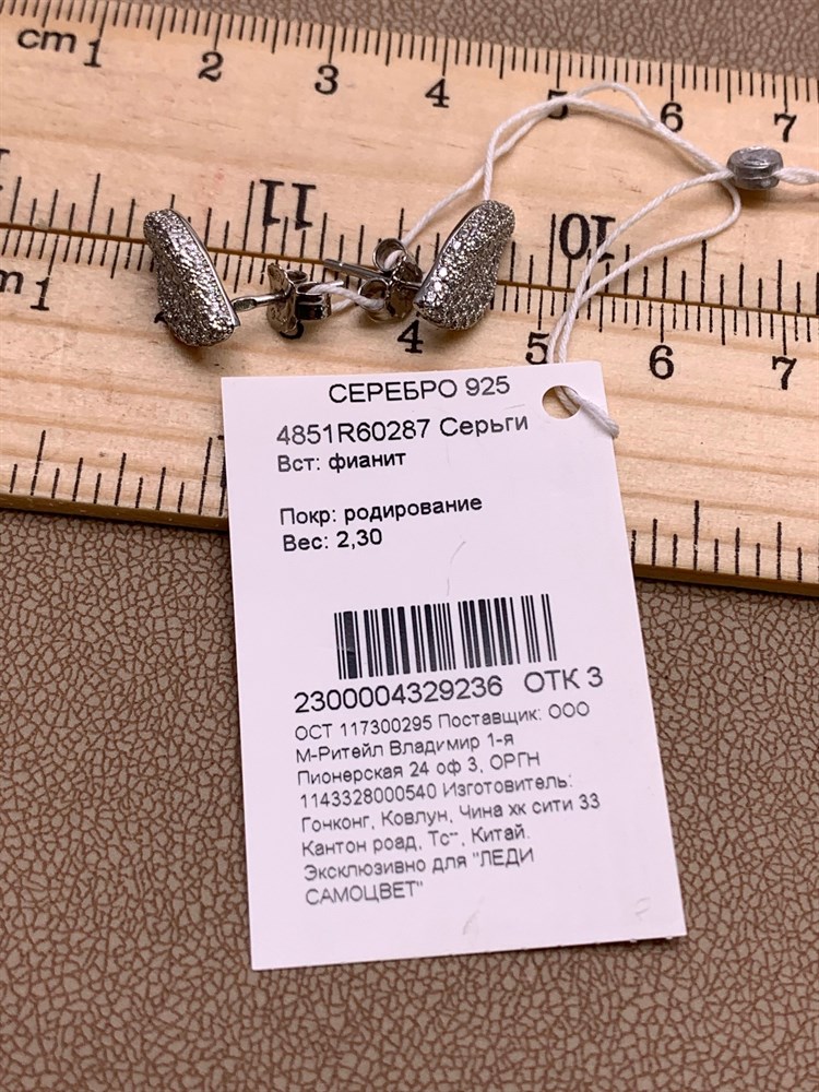 *Серьги Пусеты Белый Фианит Микро Вставки арт. 4851R60287-236 Вес 2,3 г