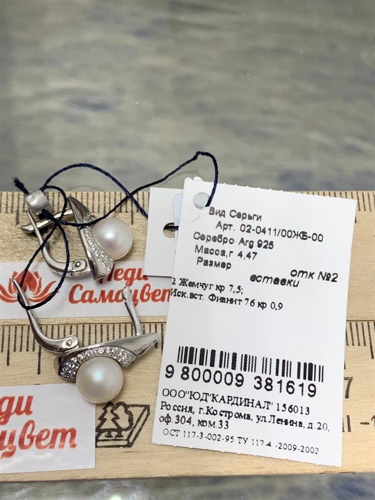 *Серьги Белый Жемчуг арт. 02-0411/00ЖБ-00-619 Вес 4,47 г