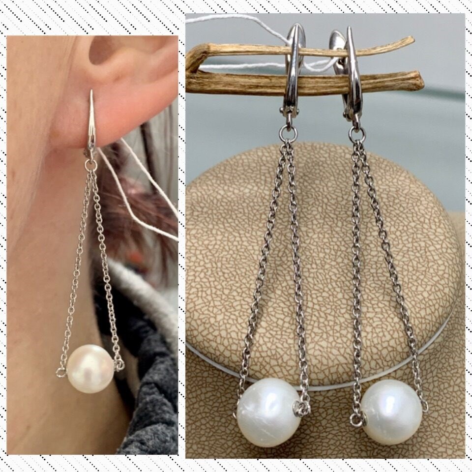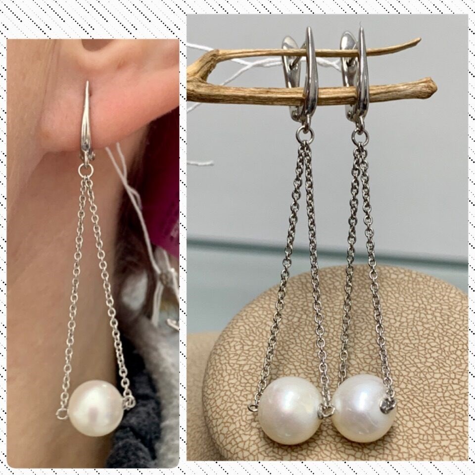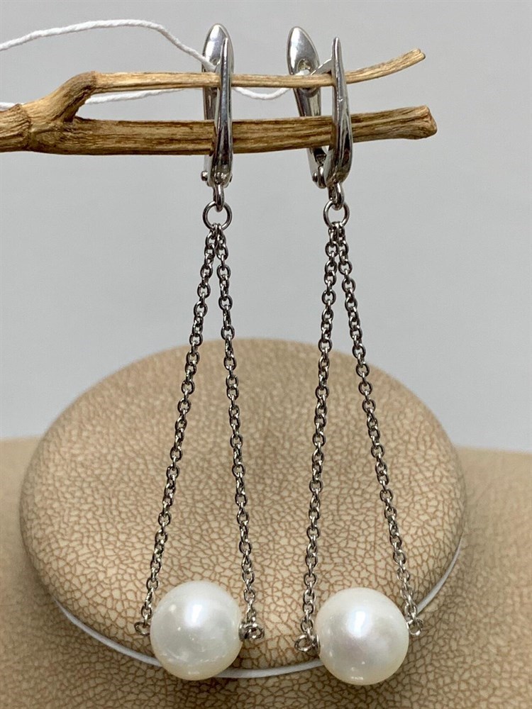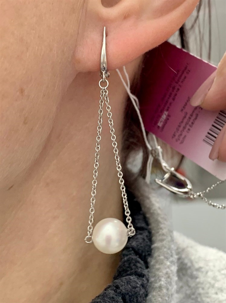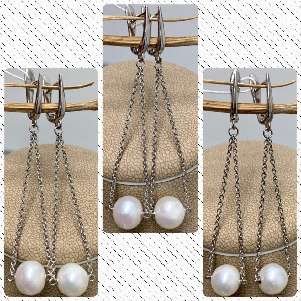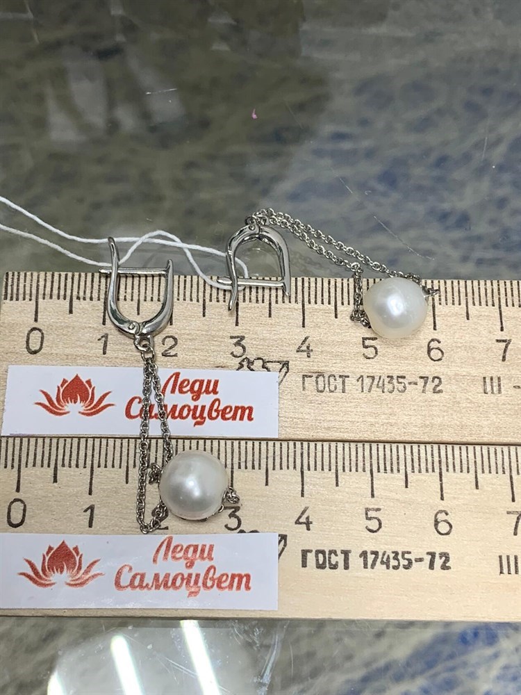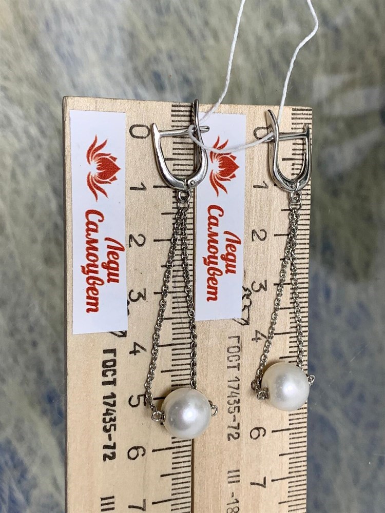 *Серьги Белый Жемчуг д.8*9мм арт. 2.1067.v.m-763 Вес 4,9 г